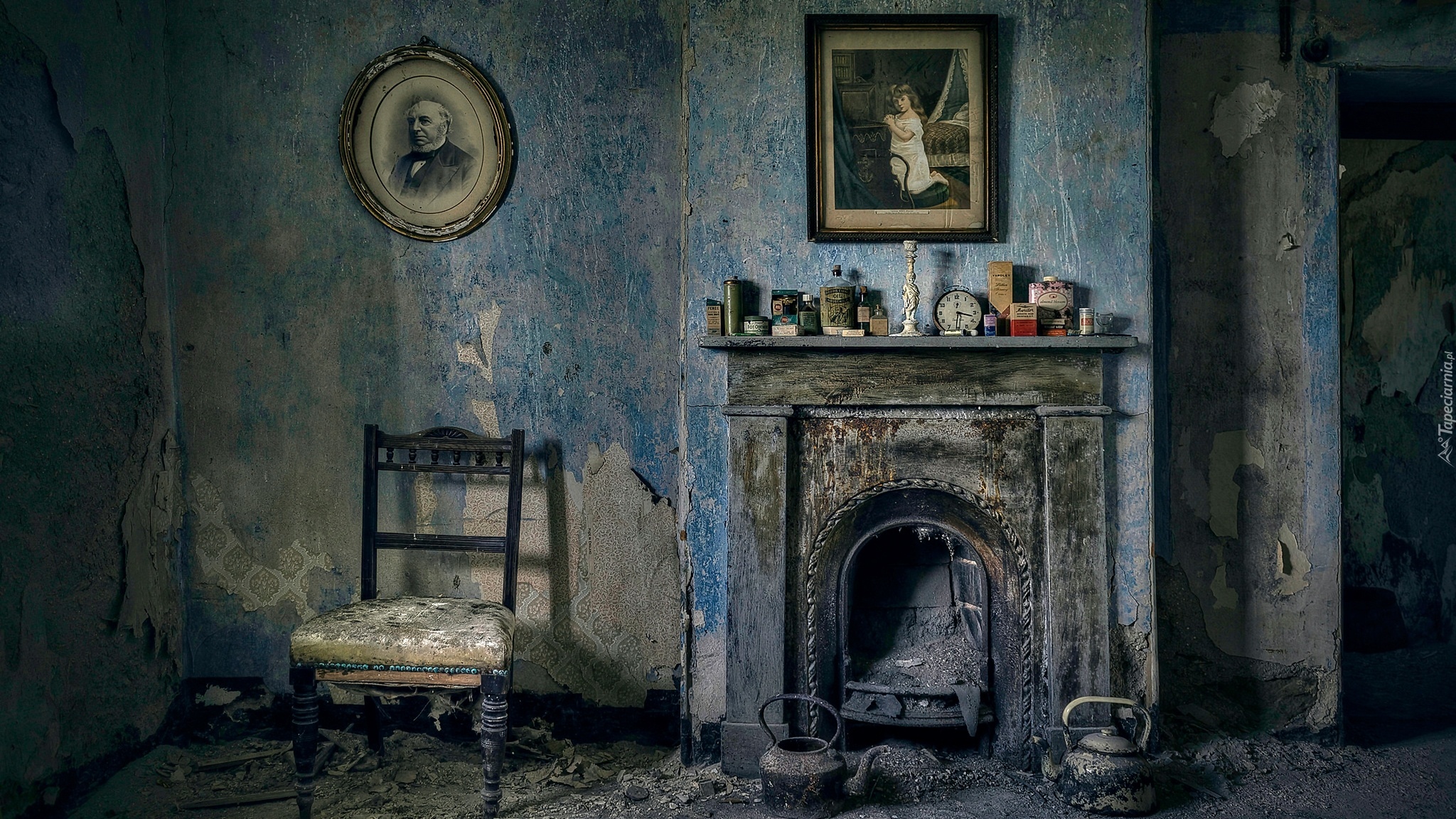 Edytor tapety: Zaniedbany, Pokój, Kominek, Krzesło