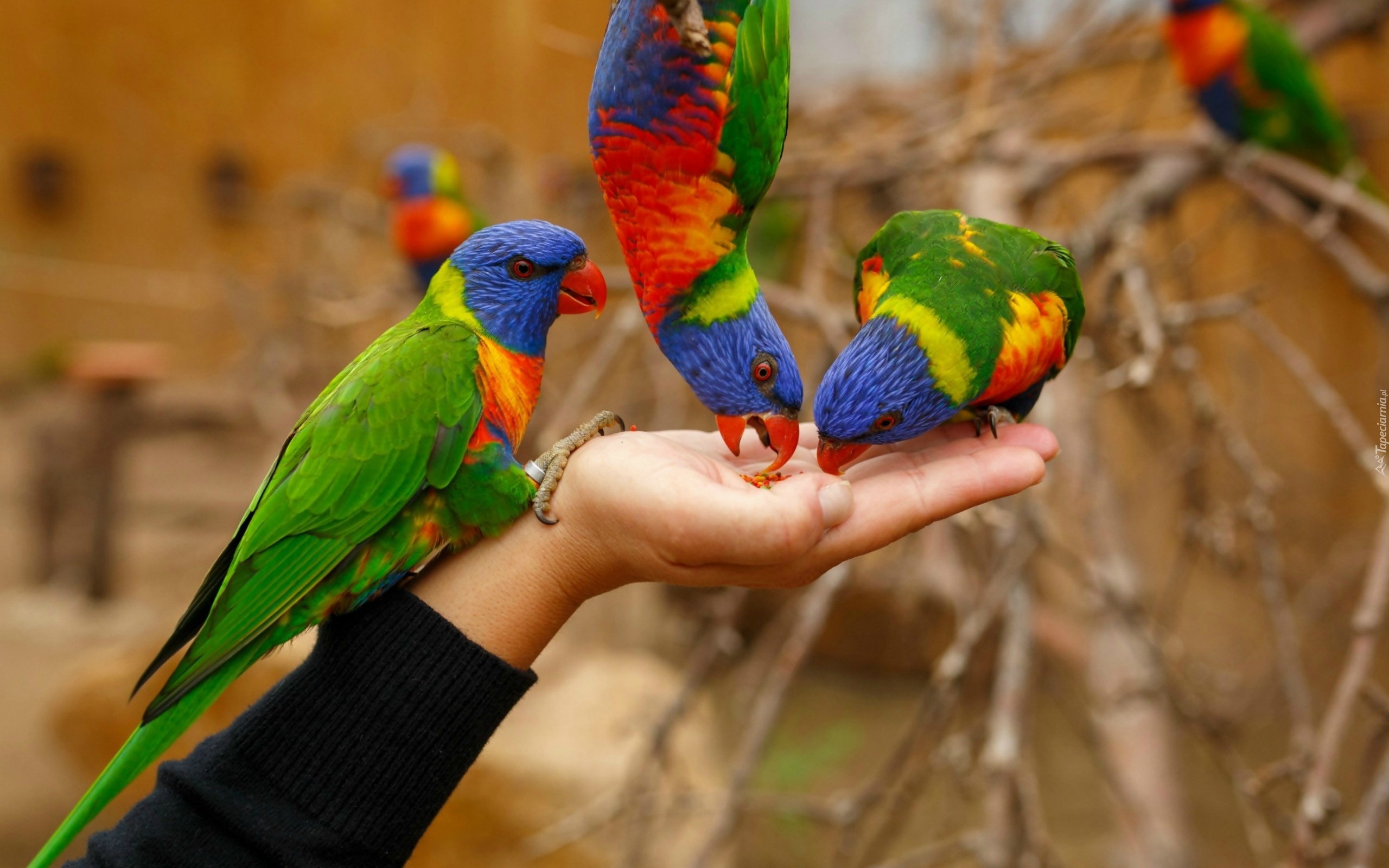 Edytor tapety: Lorysy Górskie, Dłoń, Pokarm