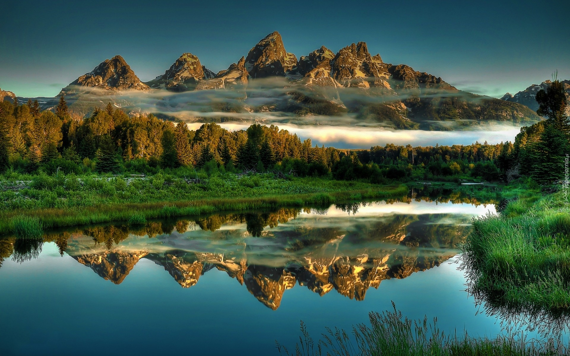 Edytor tapety: Rzeka, Lasy, Góry, Mgła