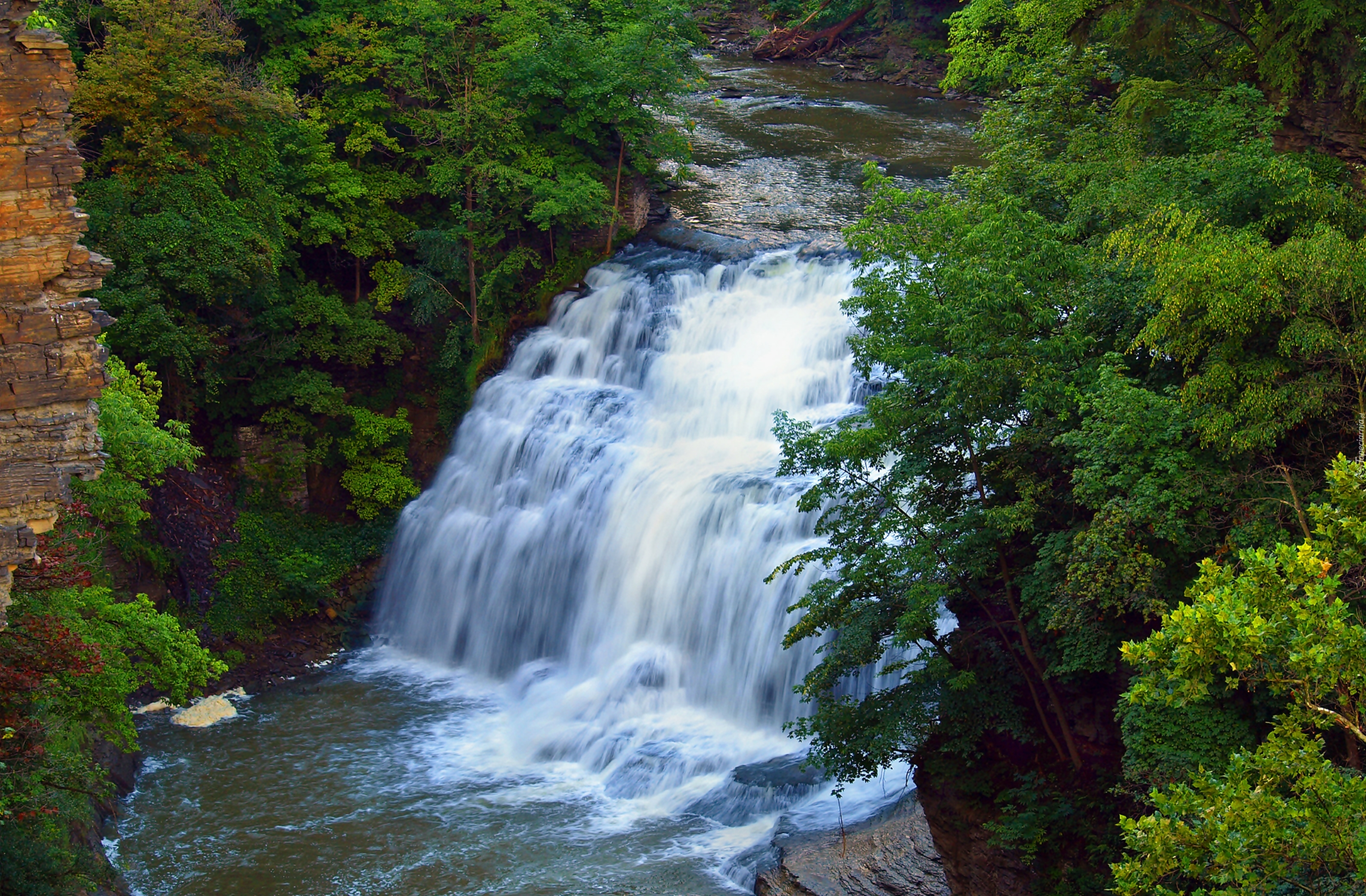 Edytor tapety: Wodospad, Las, Skały