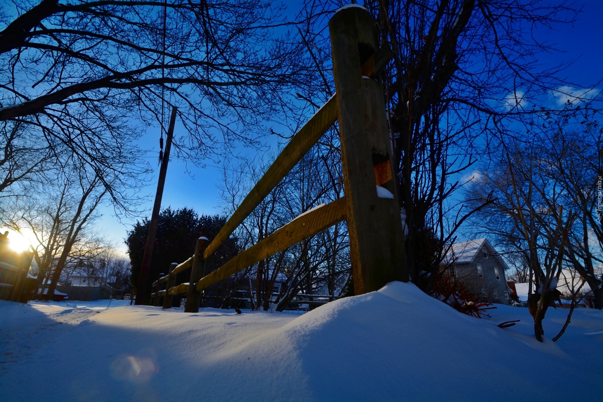 Edytor tapety: Zima, Drzewa, Śnieg, Płotek, Dom