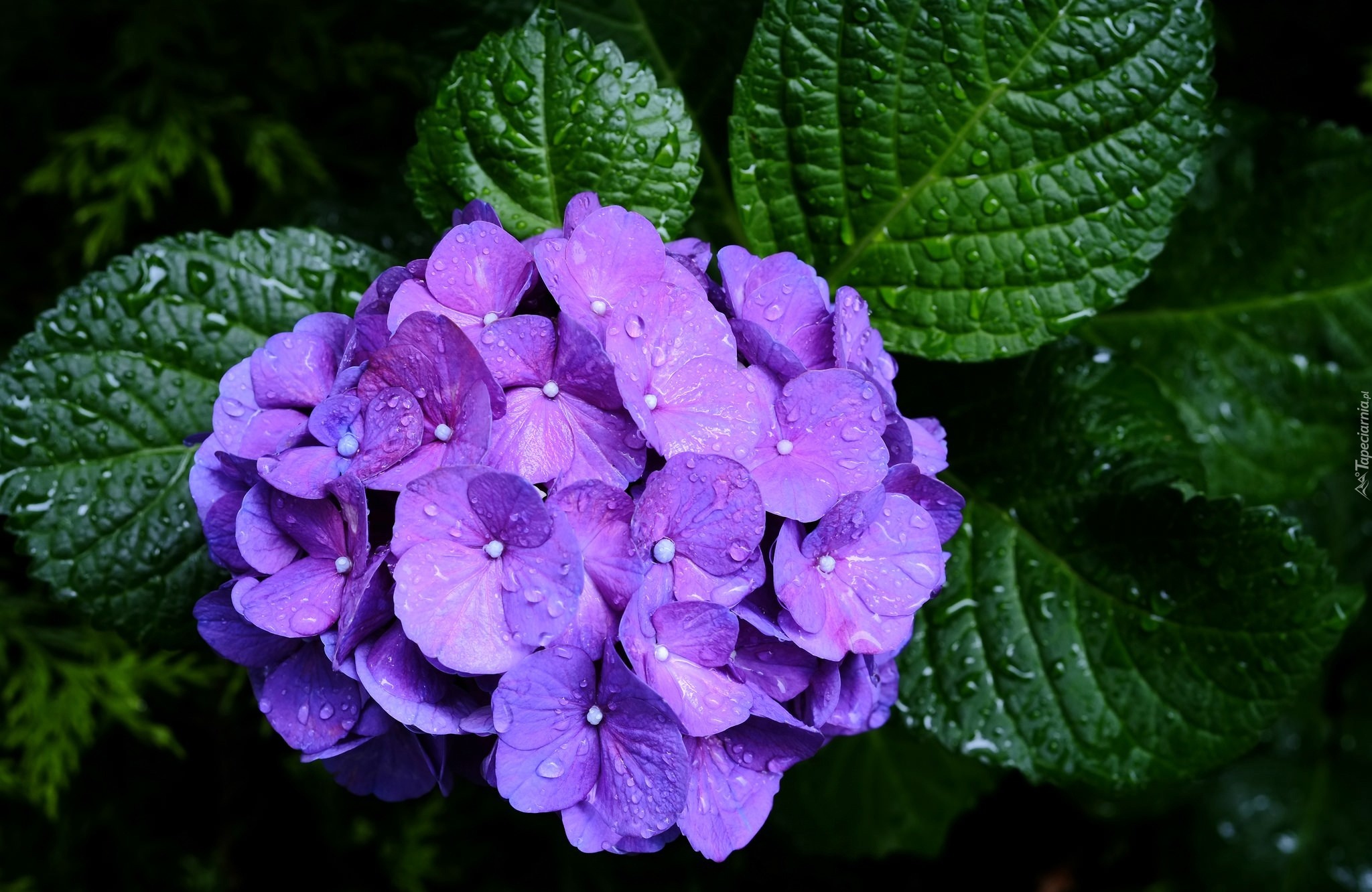 Edytor tapety: Hortensja, Liście, Deszczowe, Krople