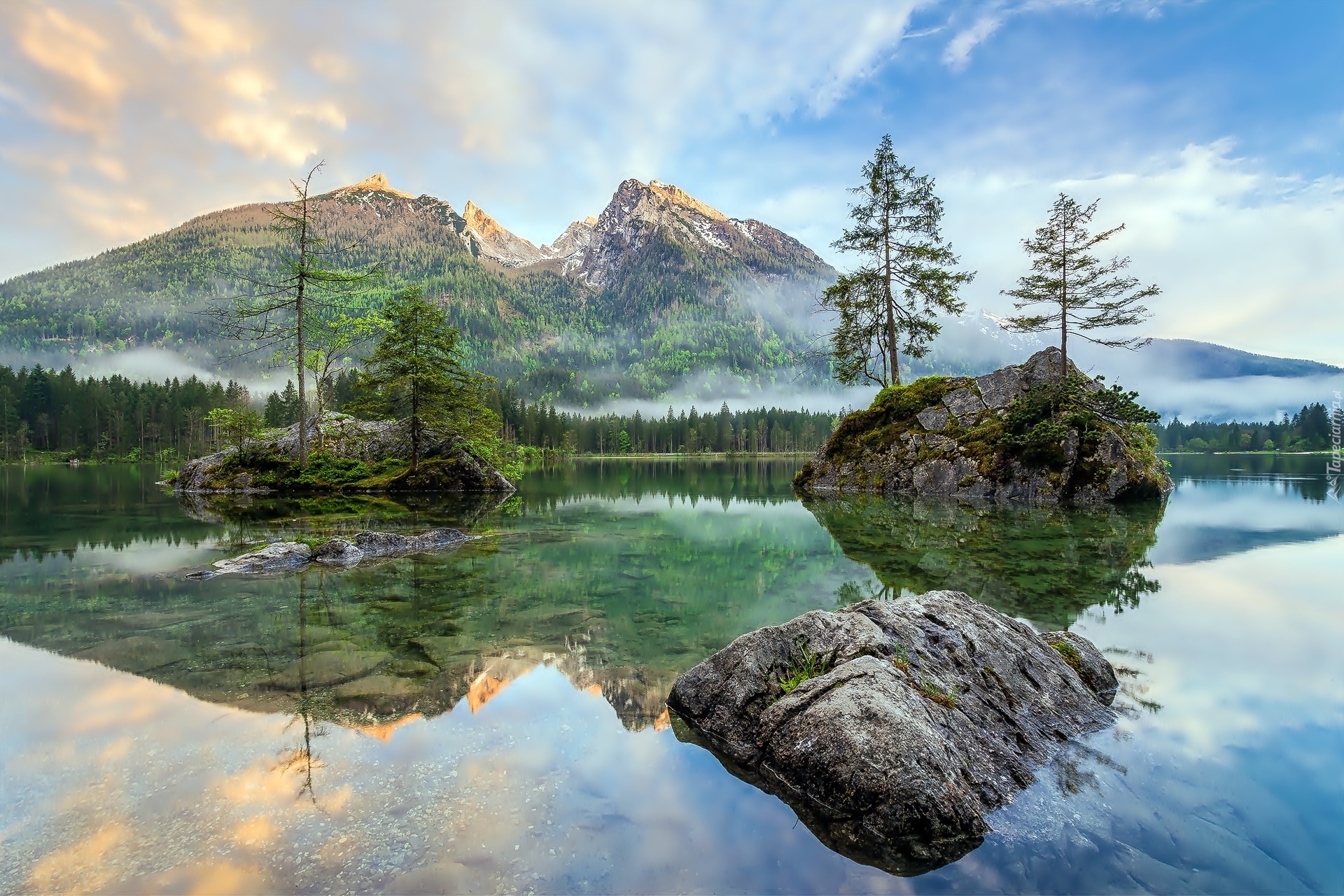 Edytor tapety: Góry, Jezioro, Skały, Mgła