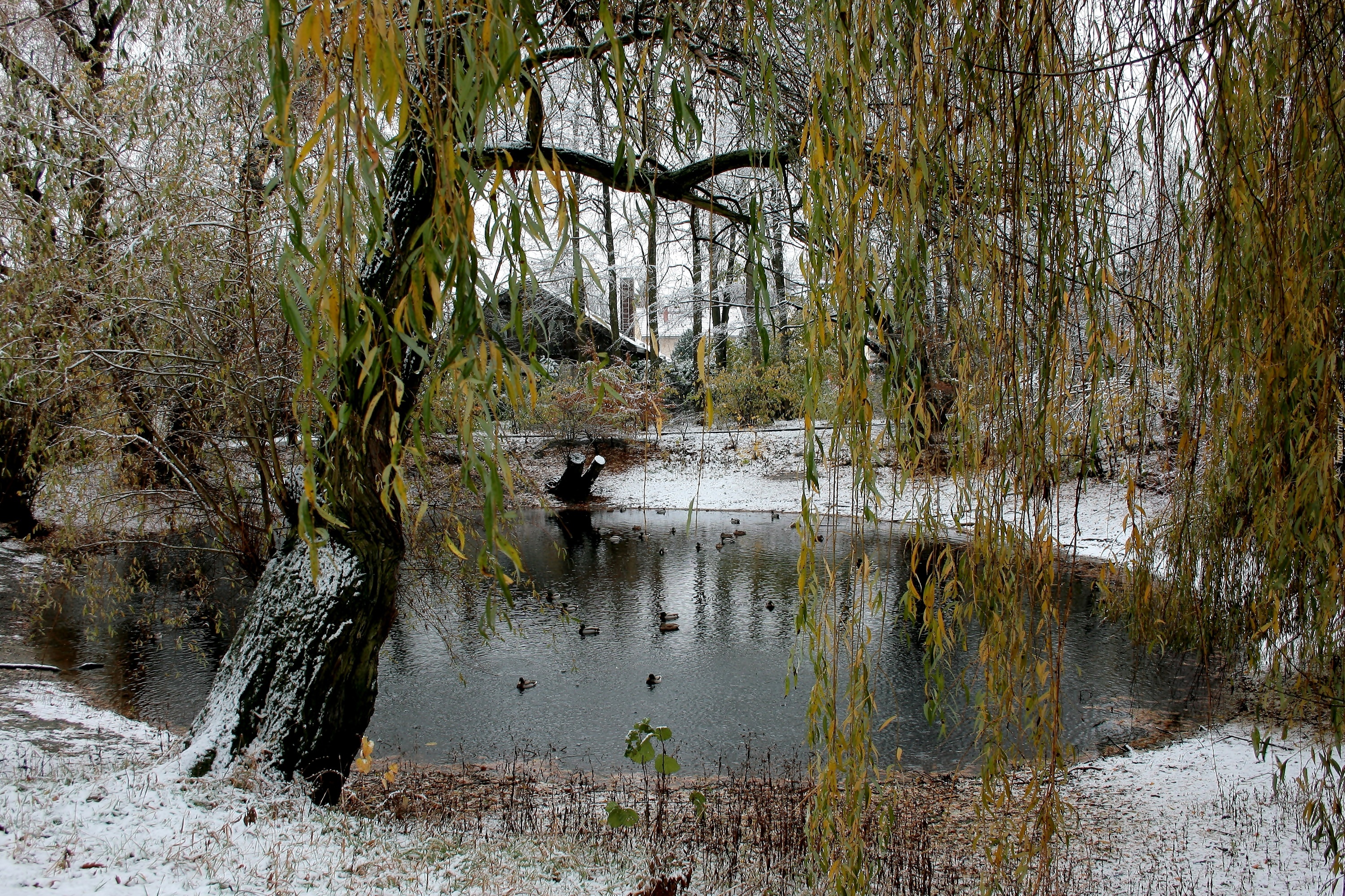 Edytor tapety: Zima, Staw, Drzewo, Kaczki