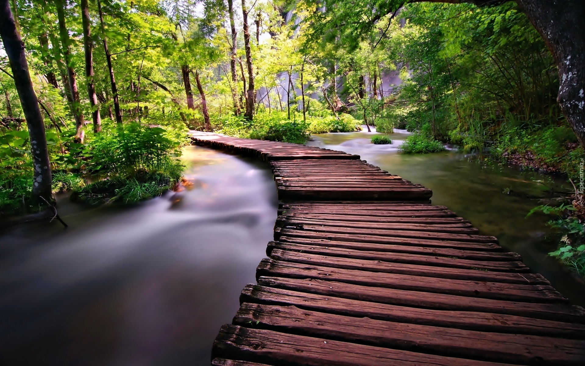 Edytor tapety: Las, Drzewa, Rzeka, Most