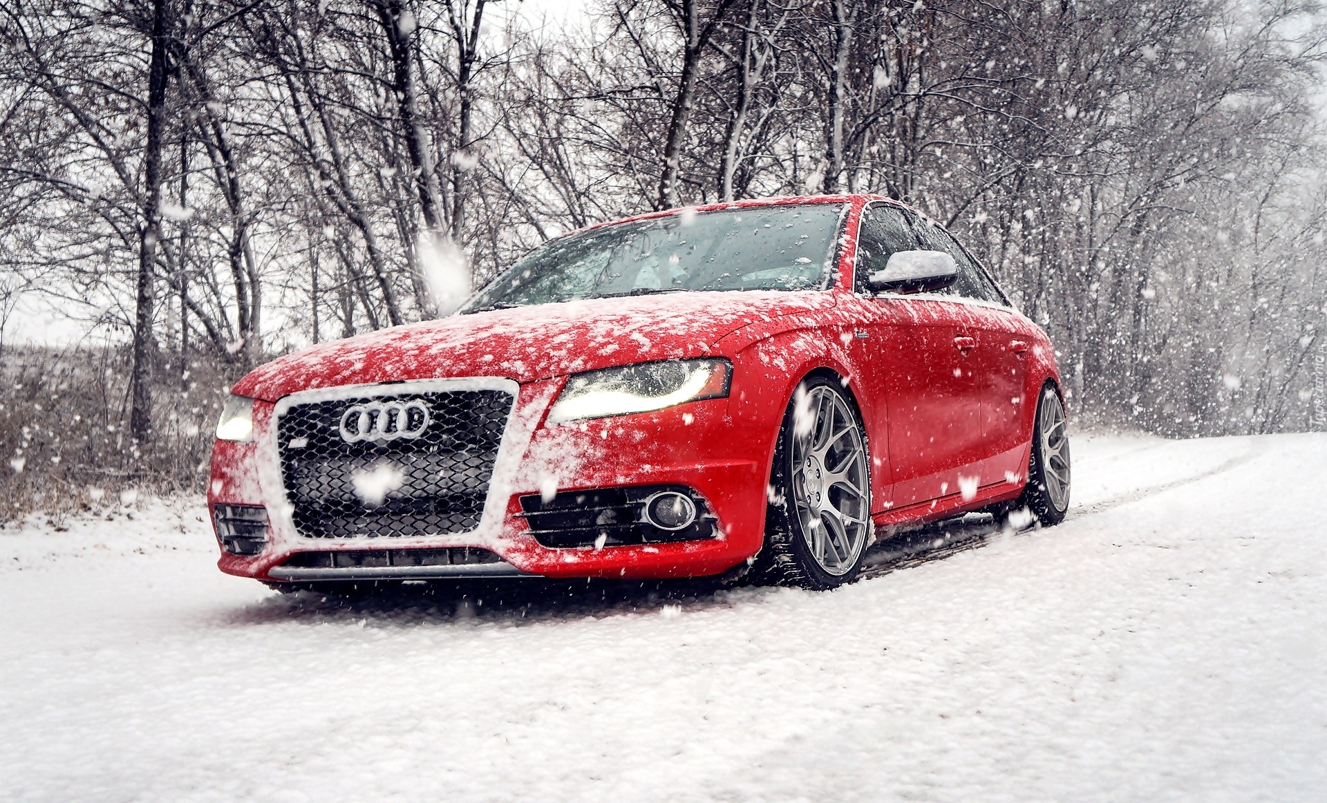 Edytor tapety: Zima, Czerwone, Padający, Śnieg Audi