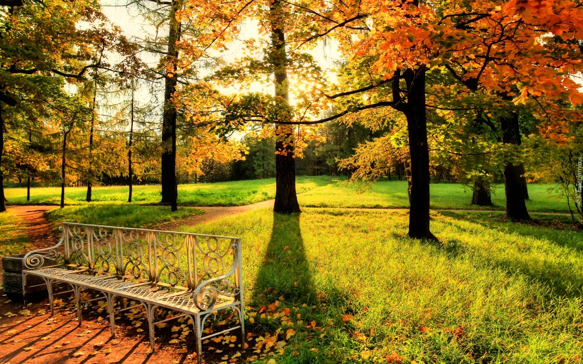 Edytor tapety: Jesień, Park, Ławka, Ławeczka