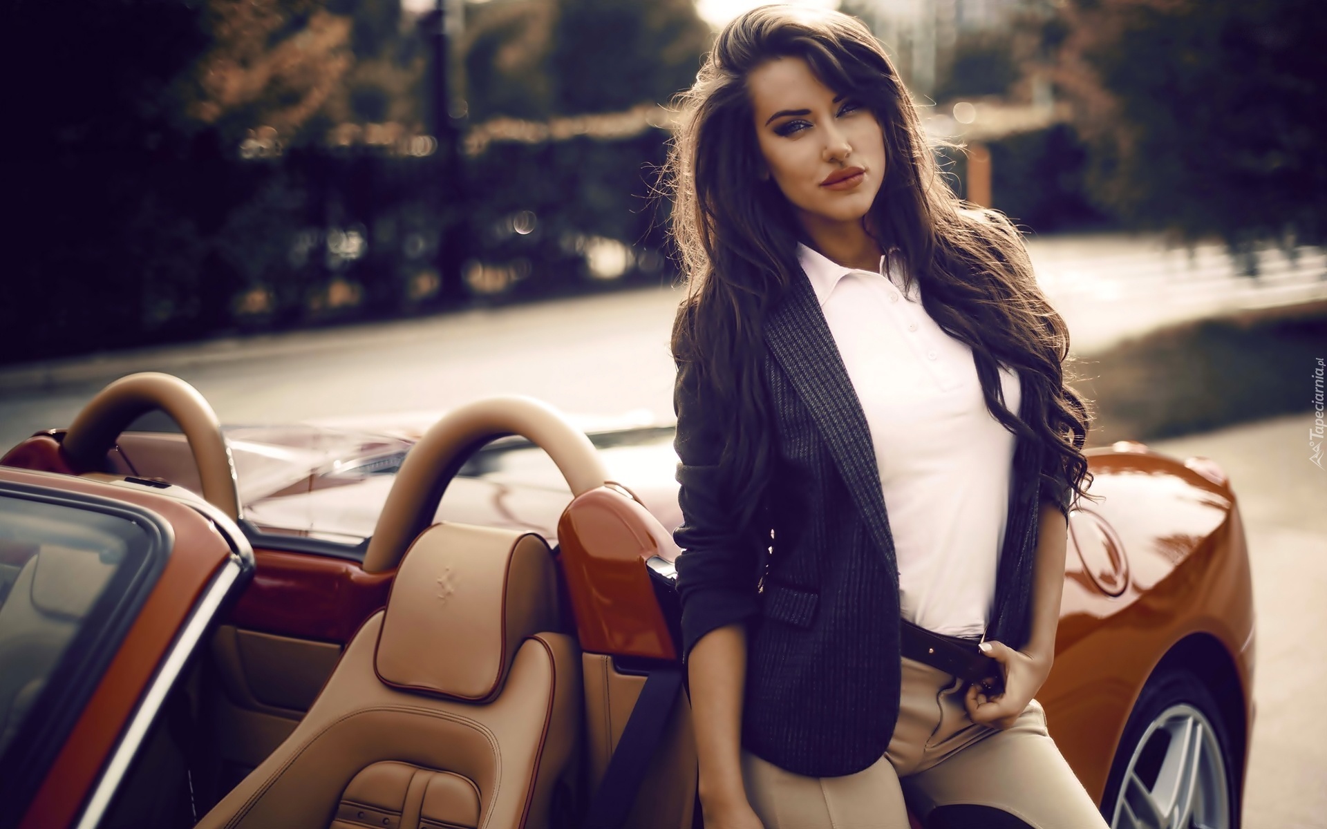 Edytor tapety: Samochód, Kobieta, Brunetka