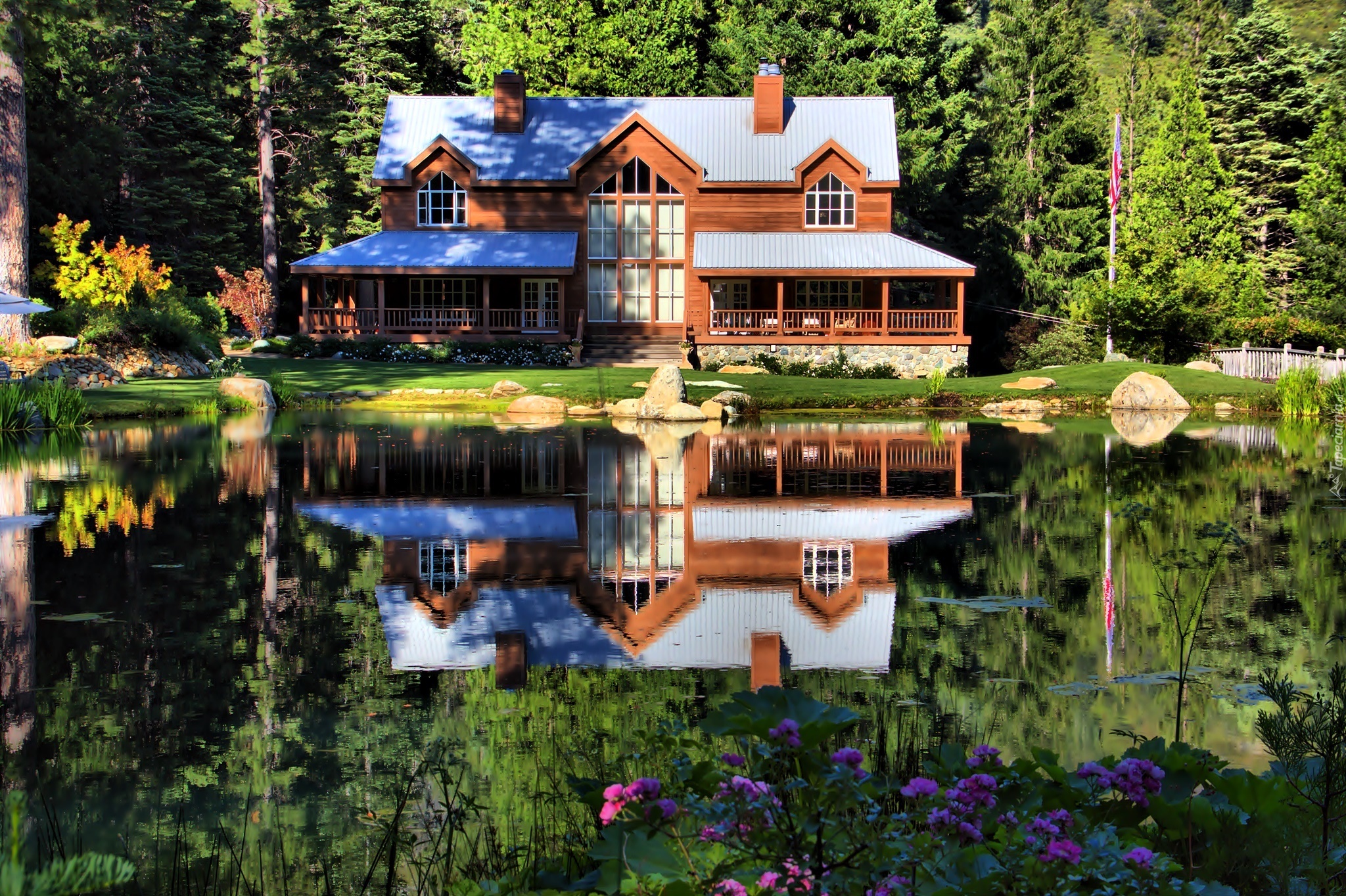 Edytor tapety: Dom Nad Stawem, Las, Odbicie, Lato