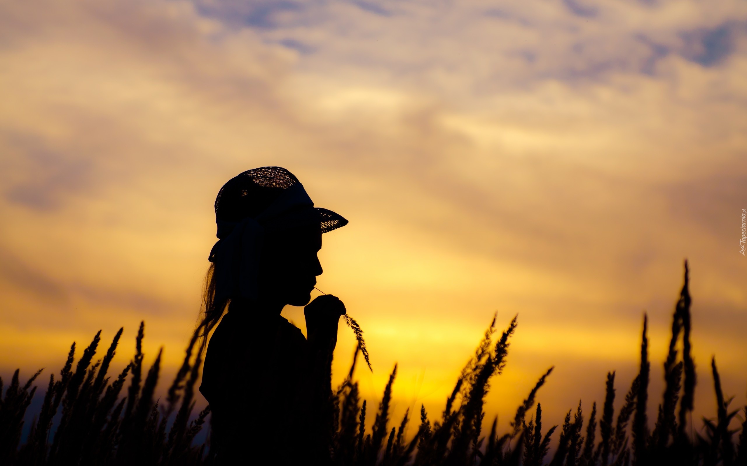 Edytor tapety: Dziewczyna, Kapelusz, Zachód, Słońca, Trawa