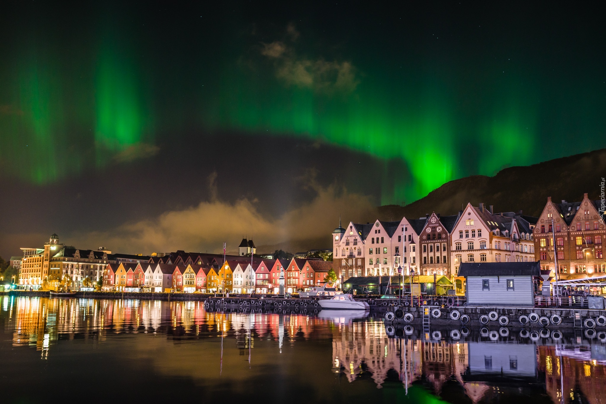Edytor tapety: Zorza Polarna, Islandia, Miasteczko