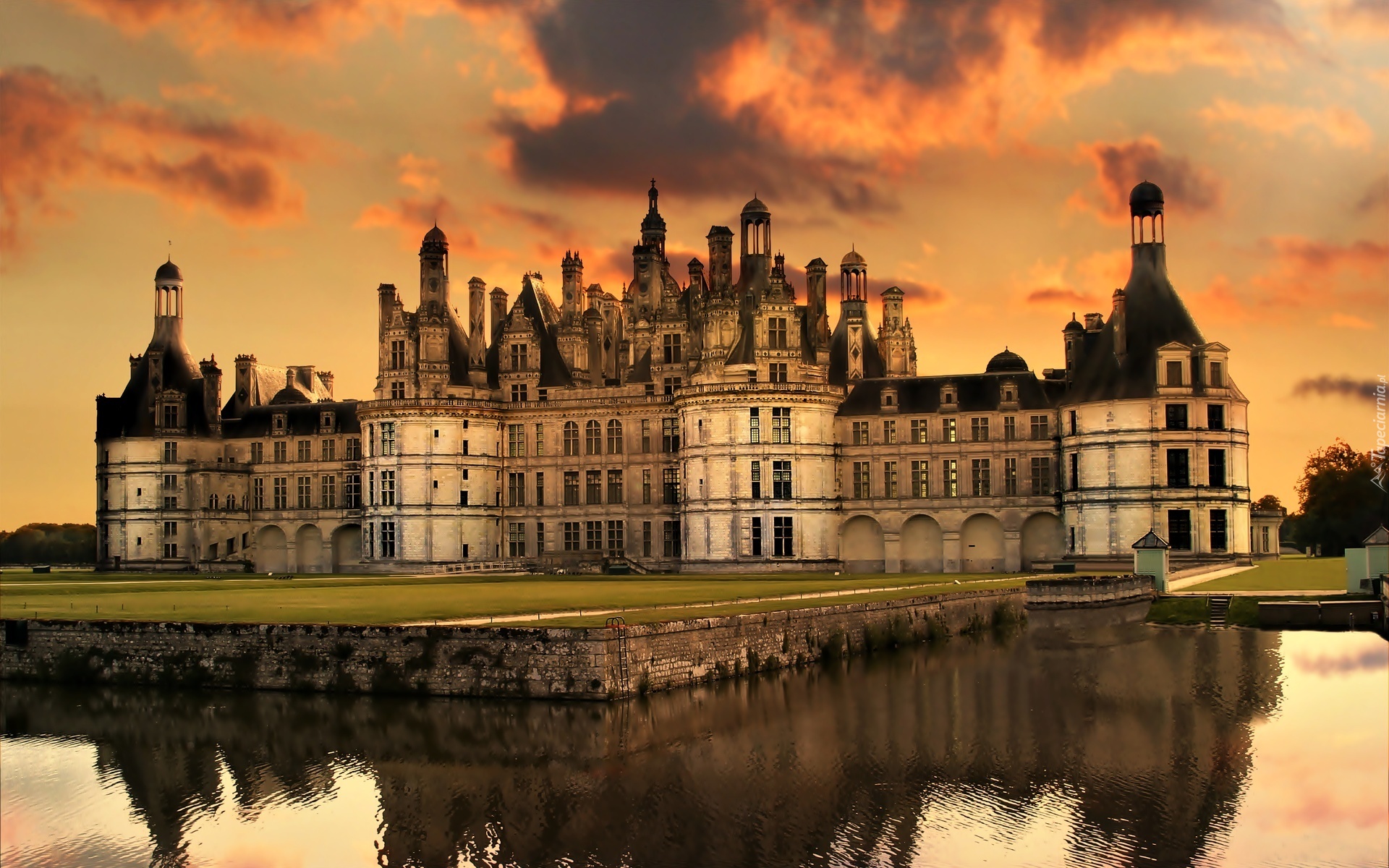 Edytor tapety: Francja, Dolina, Zamek, W Chambord, Rzeka, Odbicie