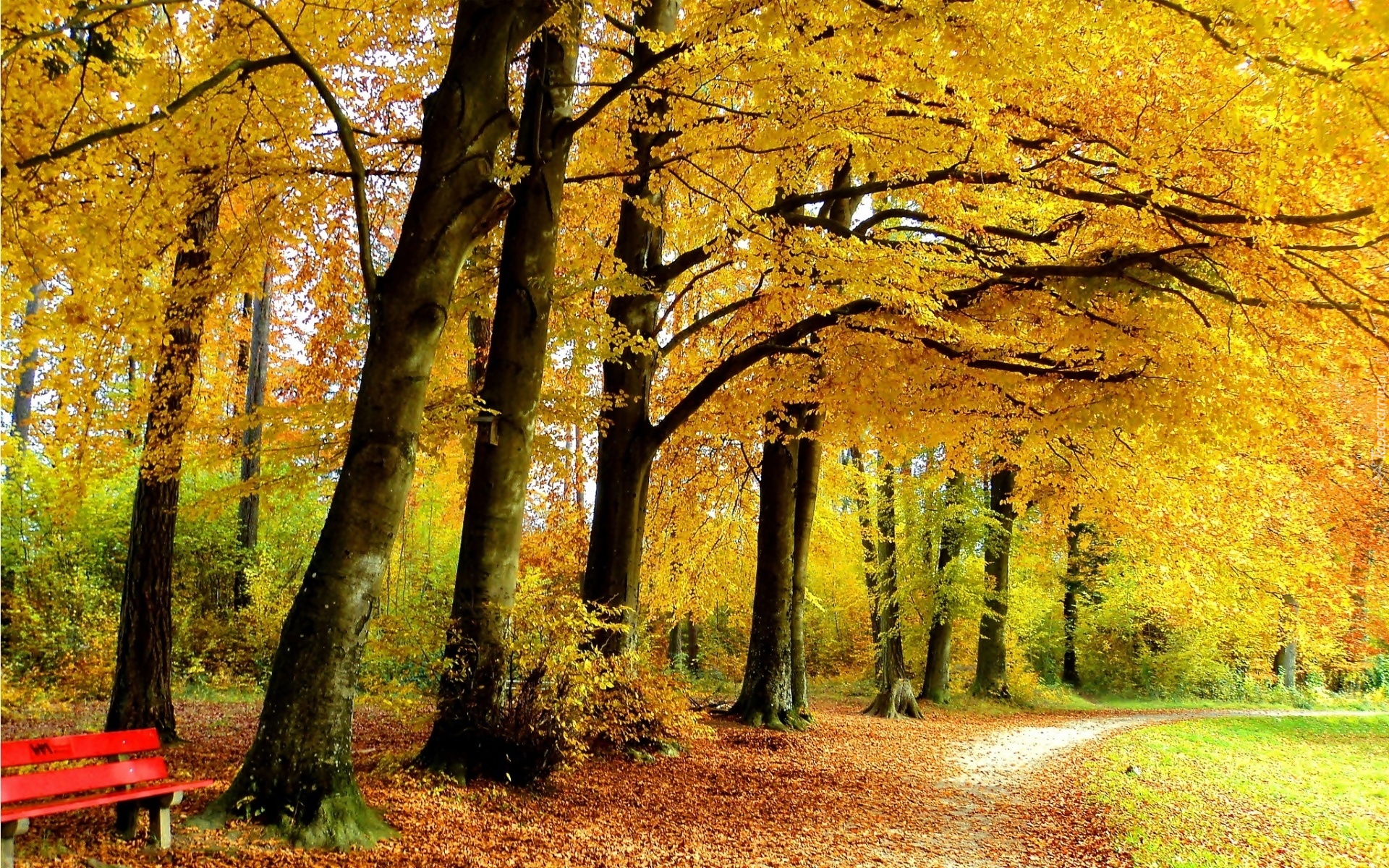 Edytor tapety: Park, Alejki, Ławki, Liście, Jesień