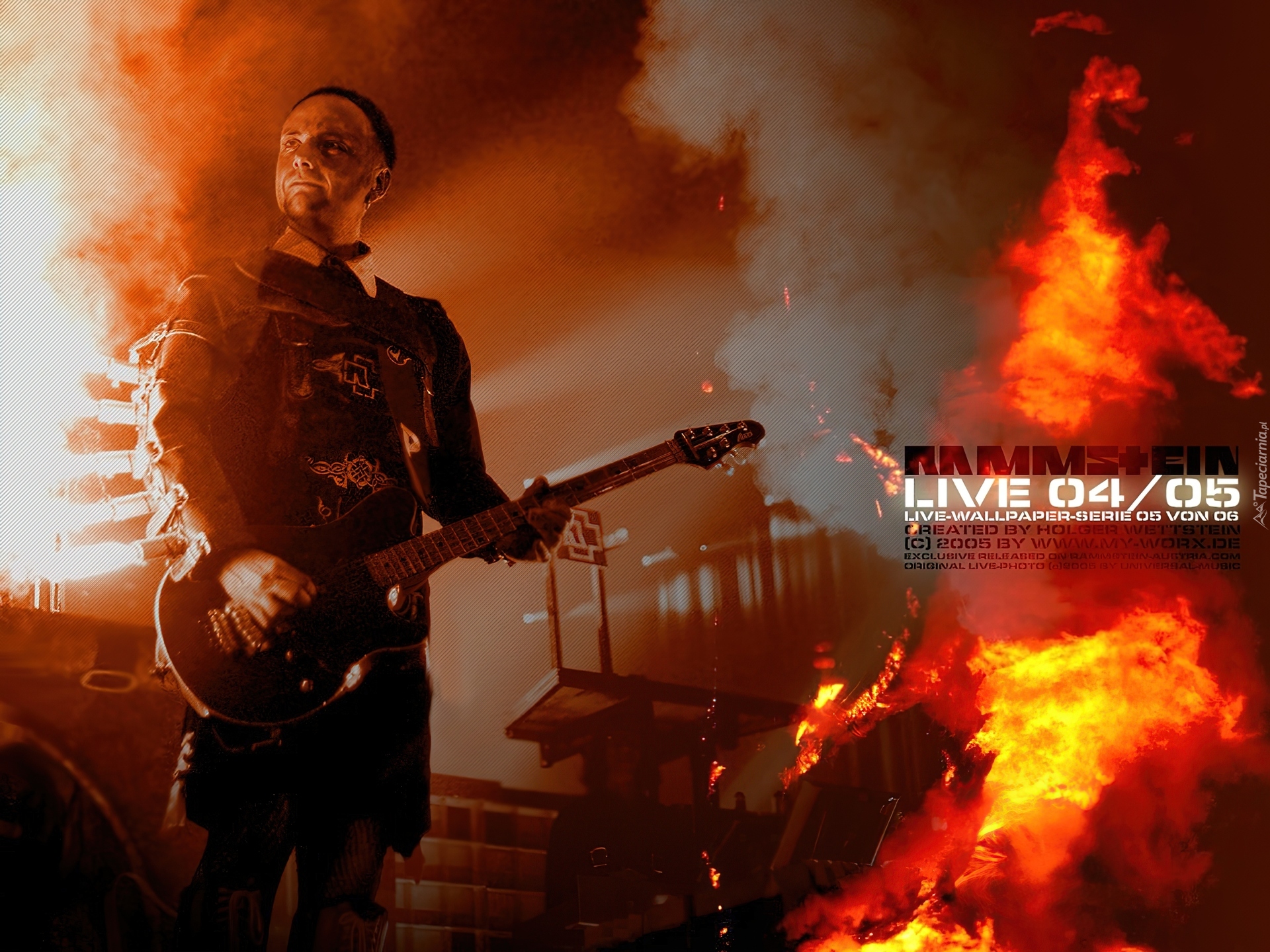 Edytor tapety: Rammstein,ogień, gitara