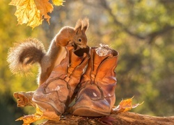 Edytor tapety: Jesień, Wiewiórka, Buty, Mała, Myszka