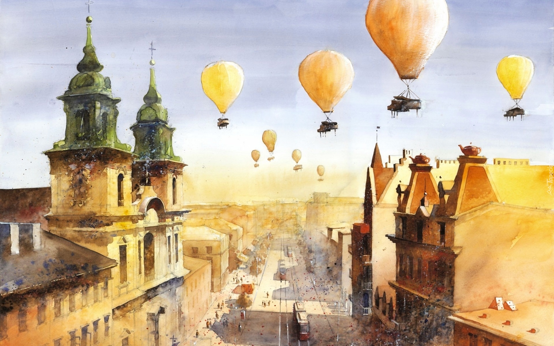 Edytor tapety: Akwarela, Tytus Brzozowski, Warszawa, Krakowskie, Przedmieście, Balony