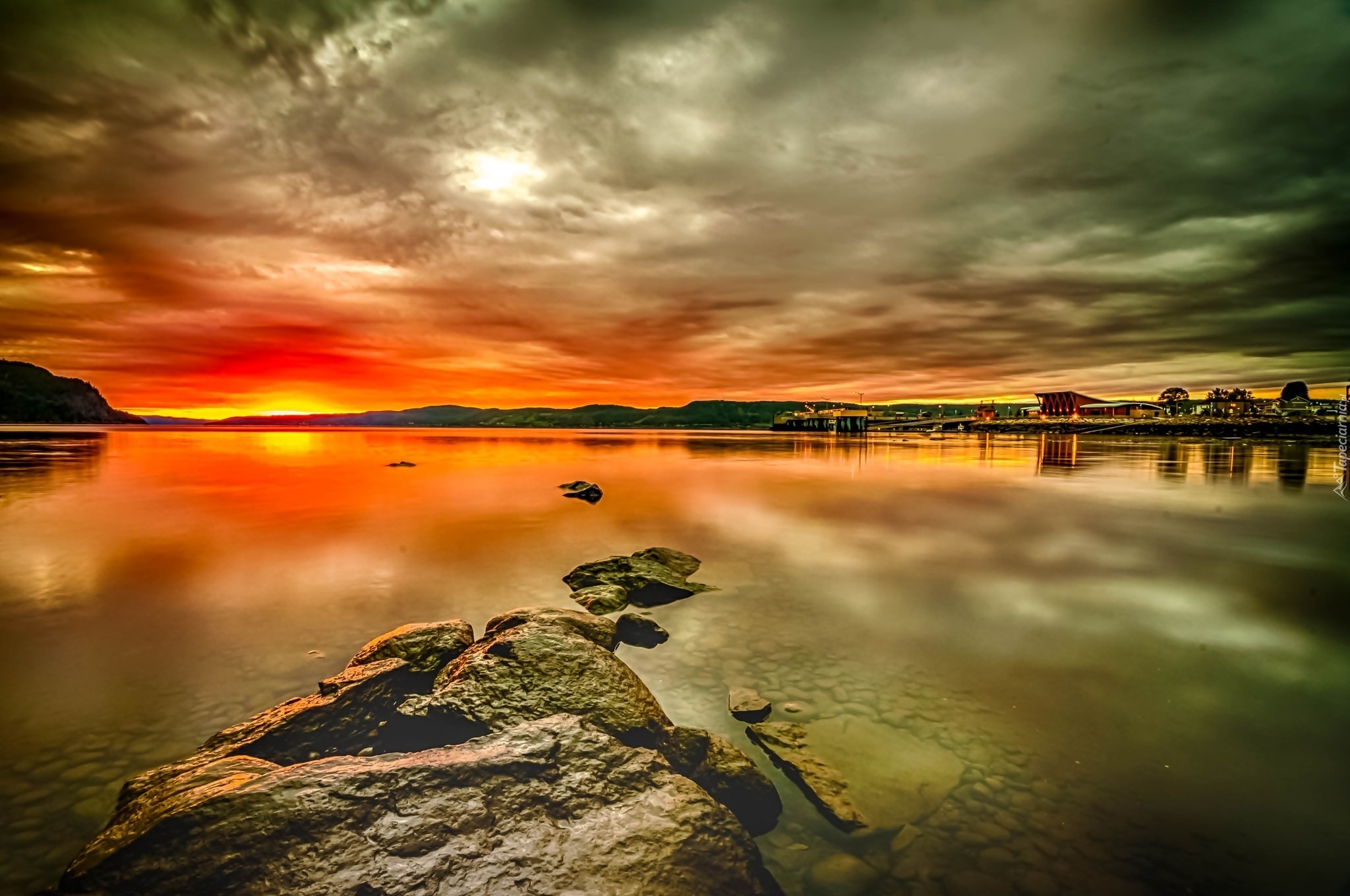 Edytor tapety: Jezioro, Kamienie, Góry, Piękny, Wschód, Słońca