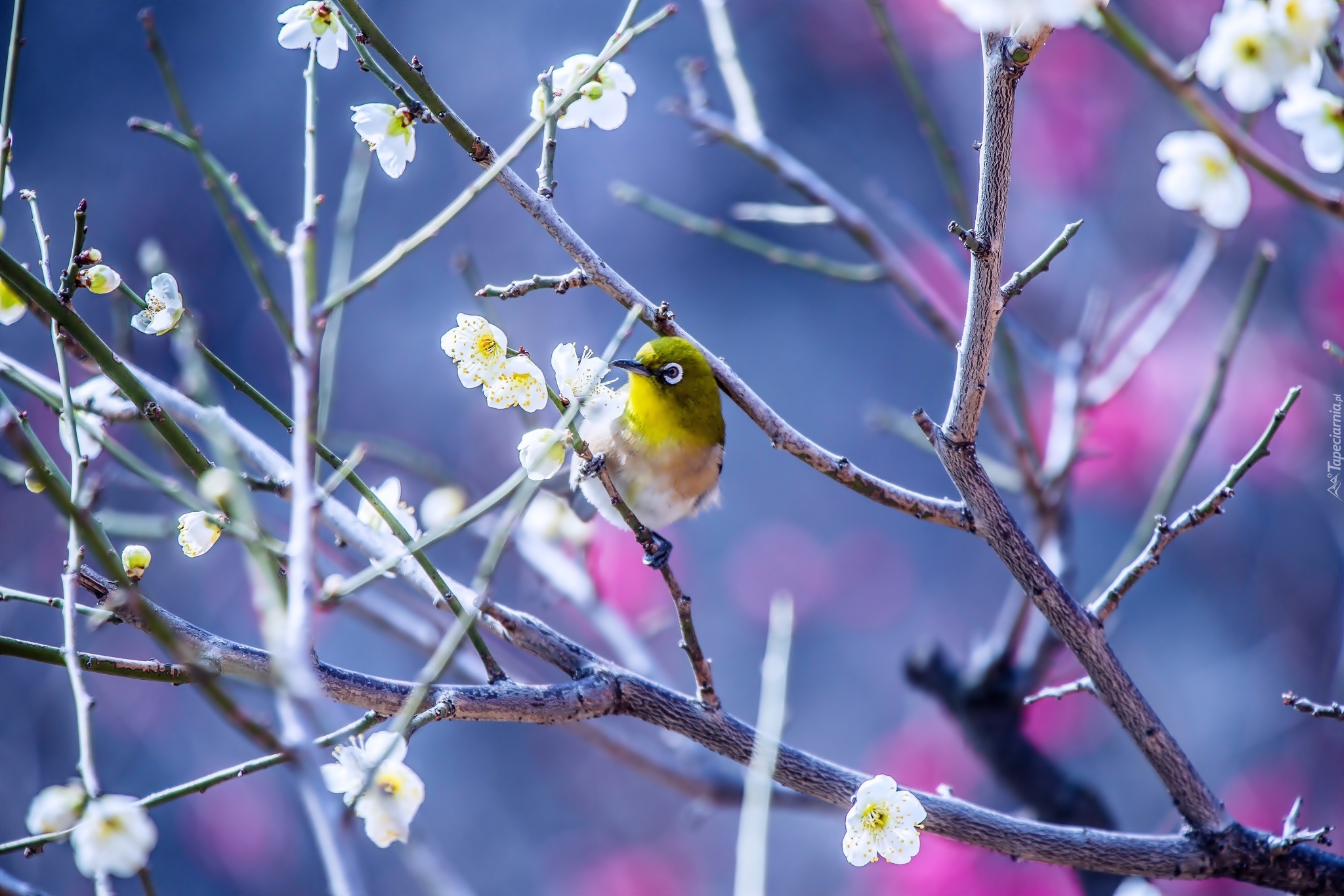 Edytor tapety: Ptak, Japoński, Białe Oko, Gałązki