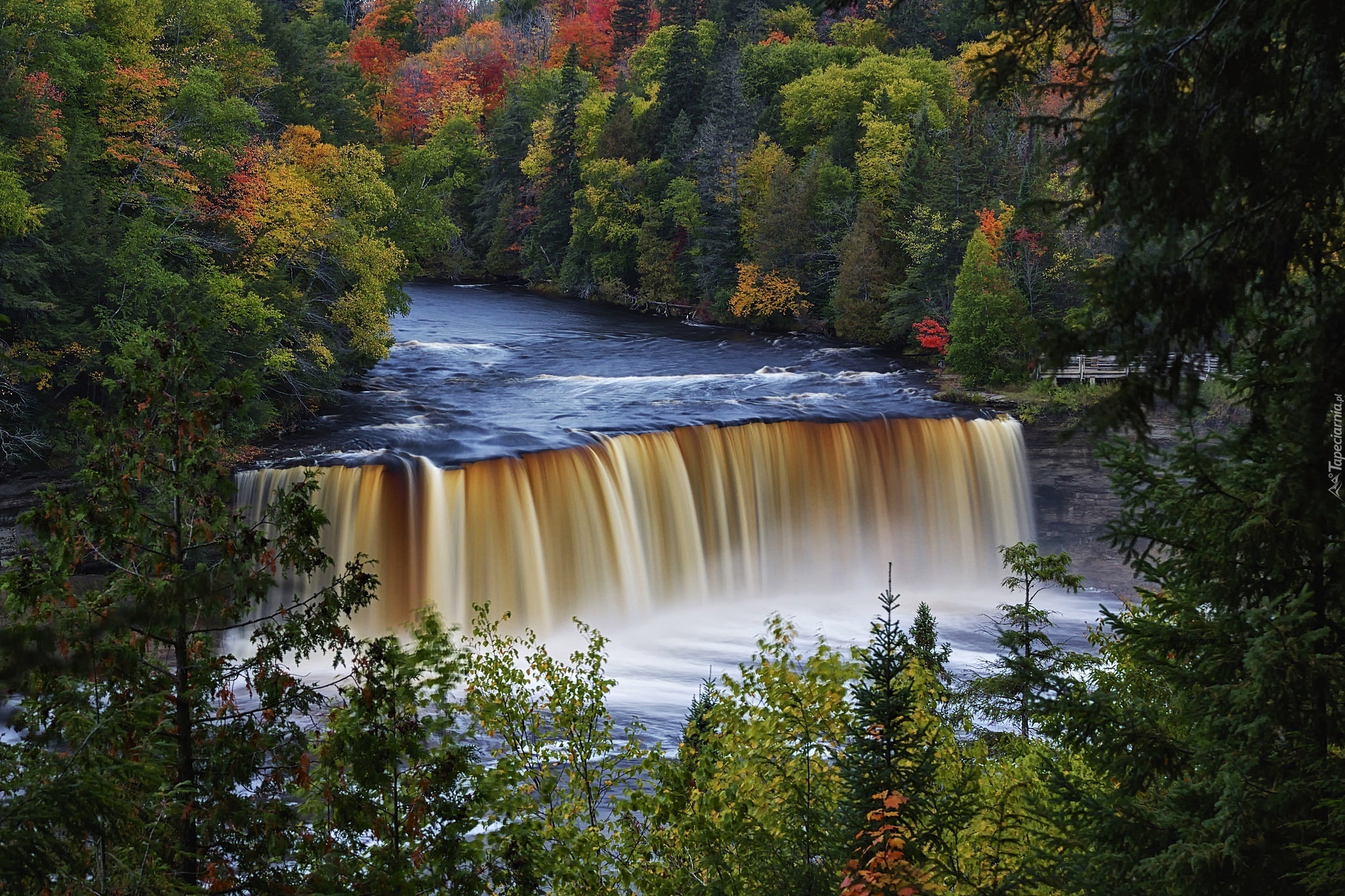 Edytor tapety: Wodospad, Las, Jesień