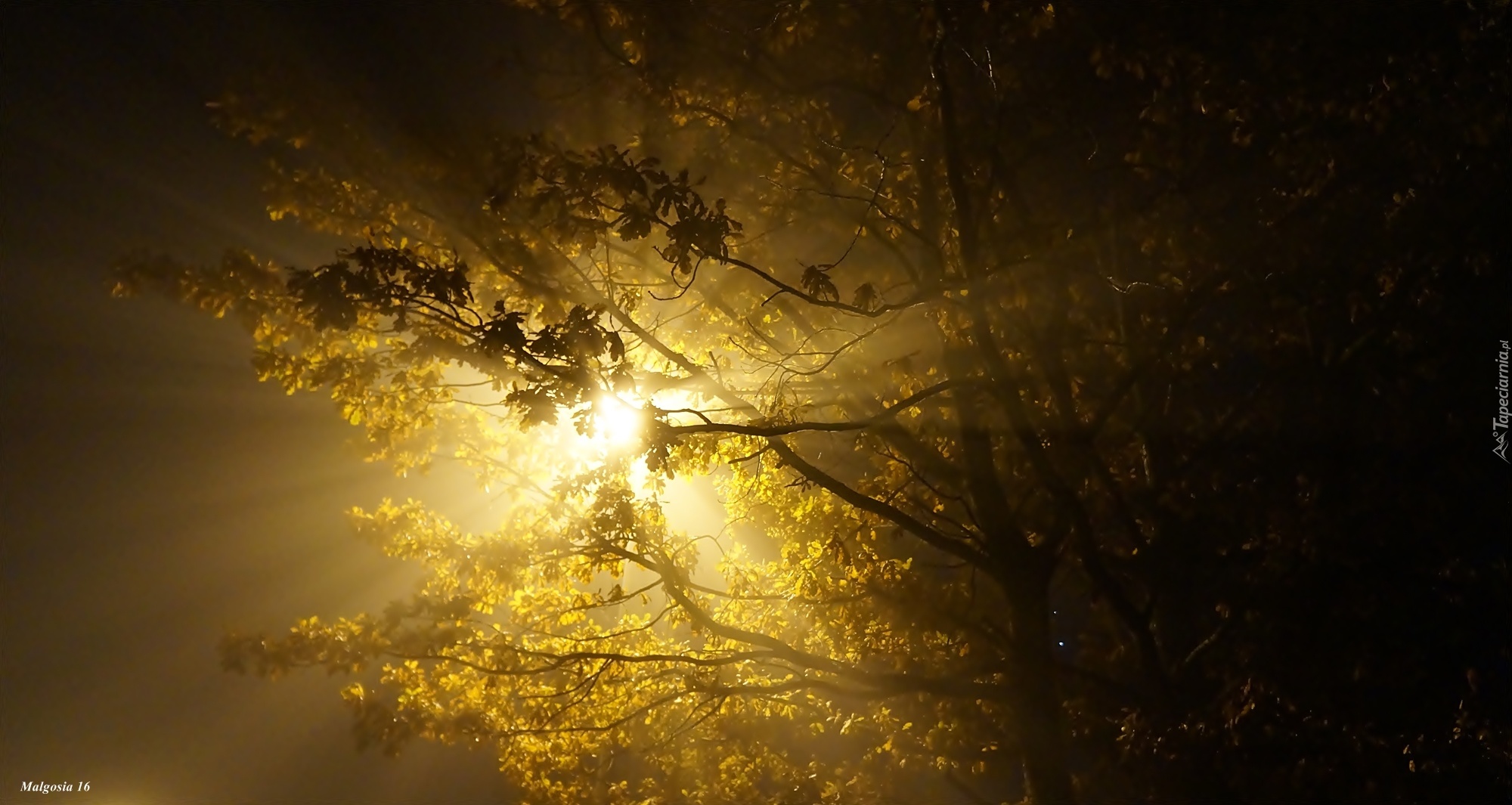 Edytor tapety: Drzewo, Noc, Przebijające Światło