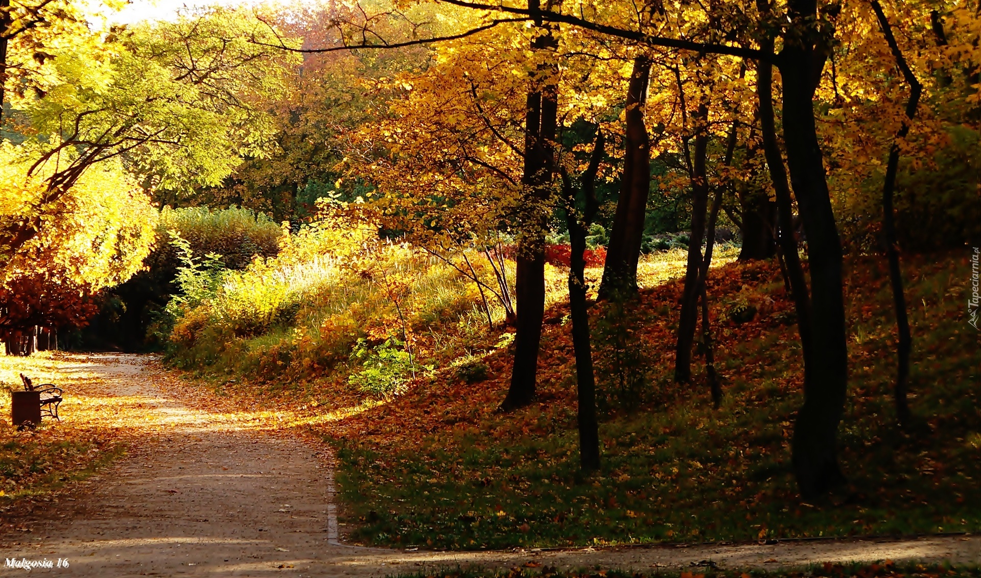 Edytor tapety: Park, Alejka, Ławka, Drzewa, Jesień