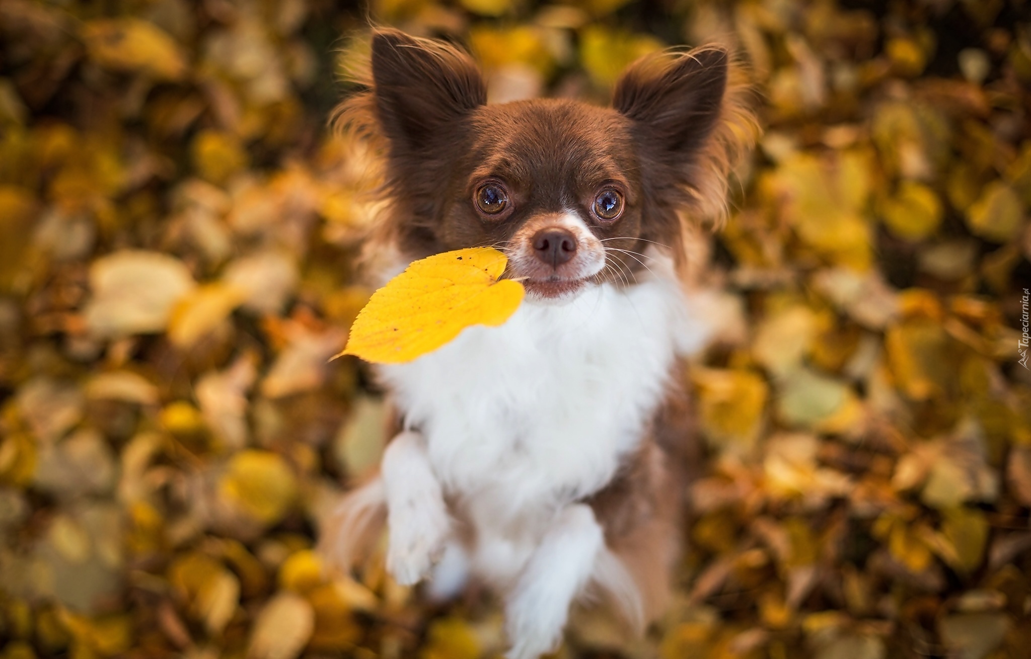 Edytor tapety: Pies, Chihuahua, Jesienne, Liście