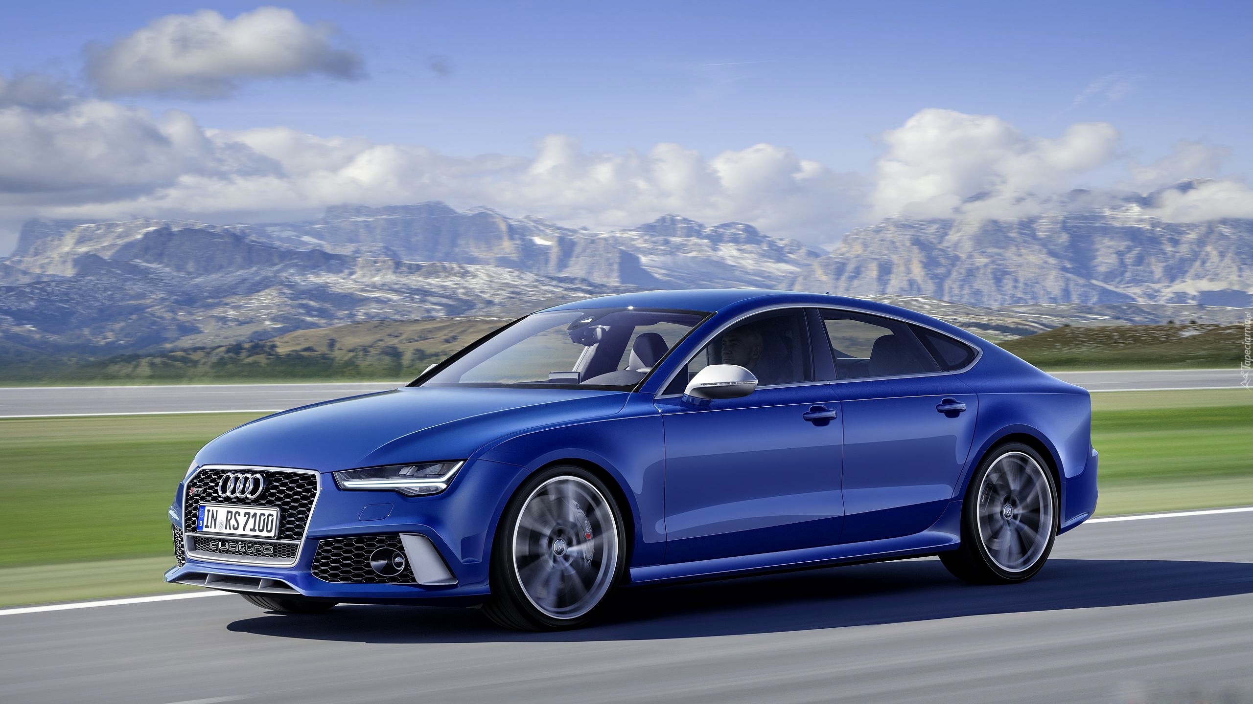 Edytor tapety: Niebieskie, Audi, RS7, Droga, Góry