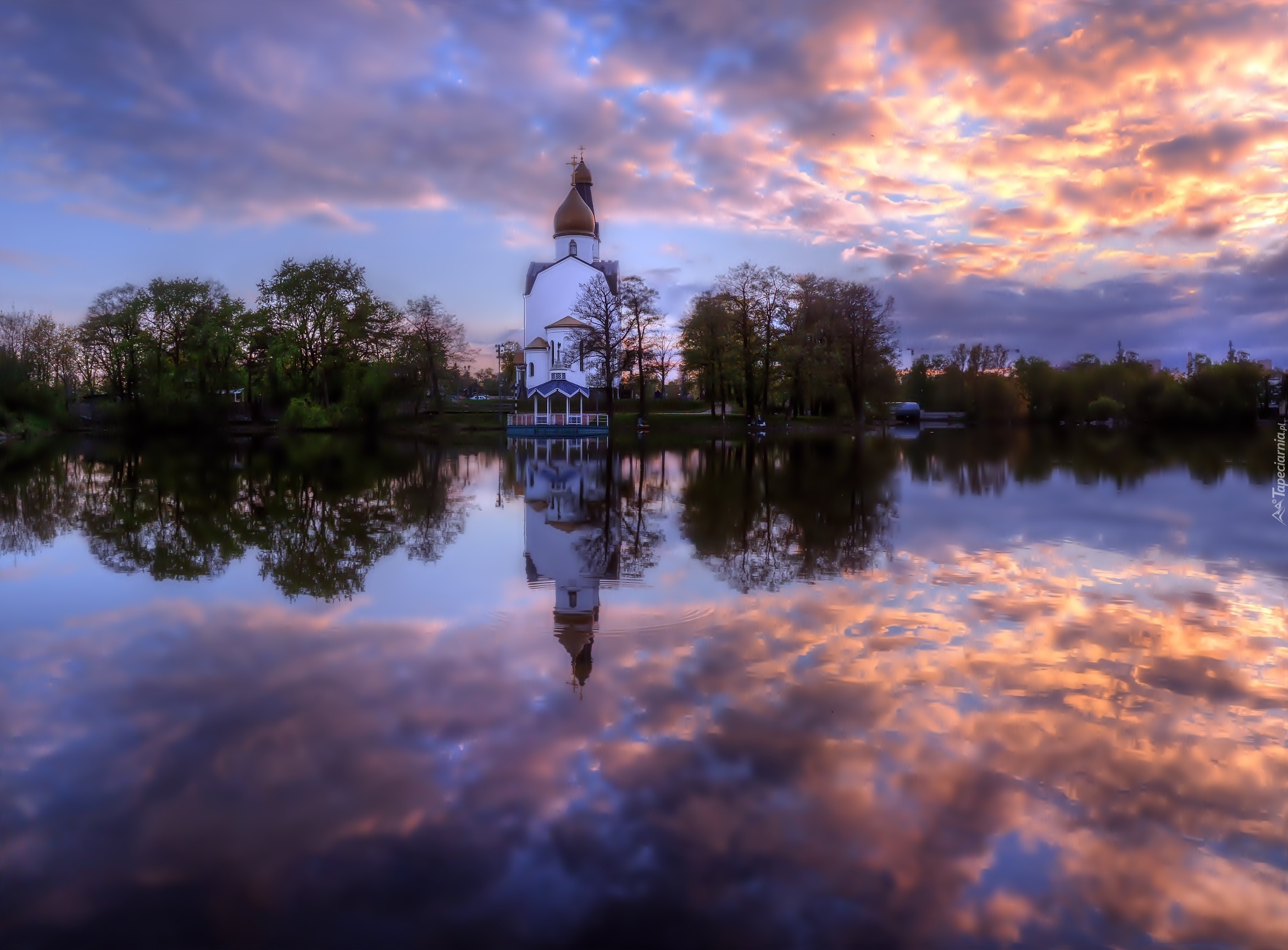 Edytor tapety: Cerkiew, Chmury, Drzewa, Odbicie, Rosja