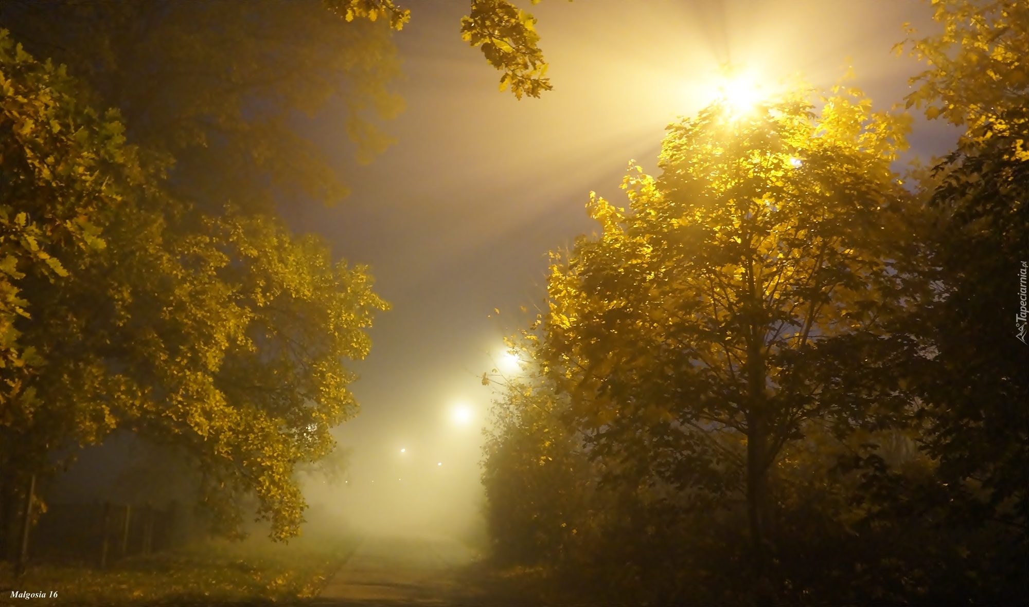 Edytor tapety: Drzewa, Noc, Mgła, Przebijające Światło