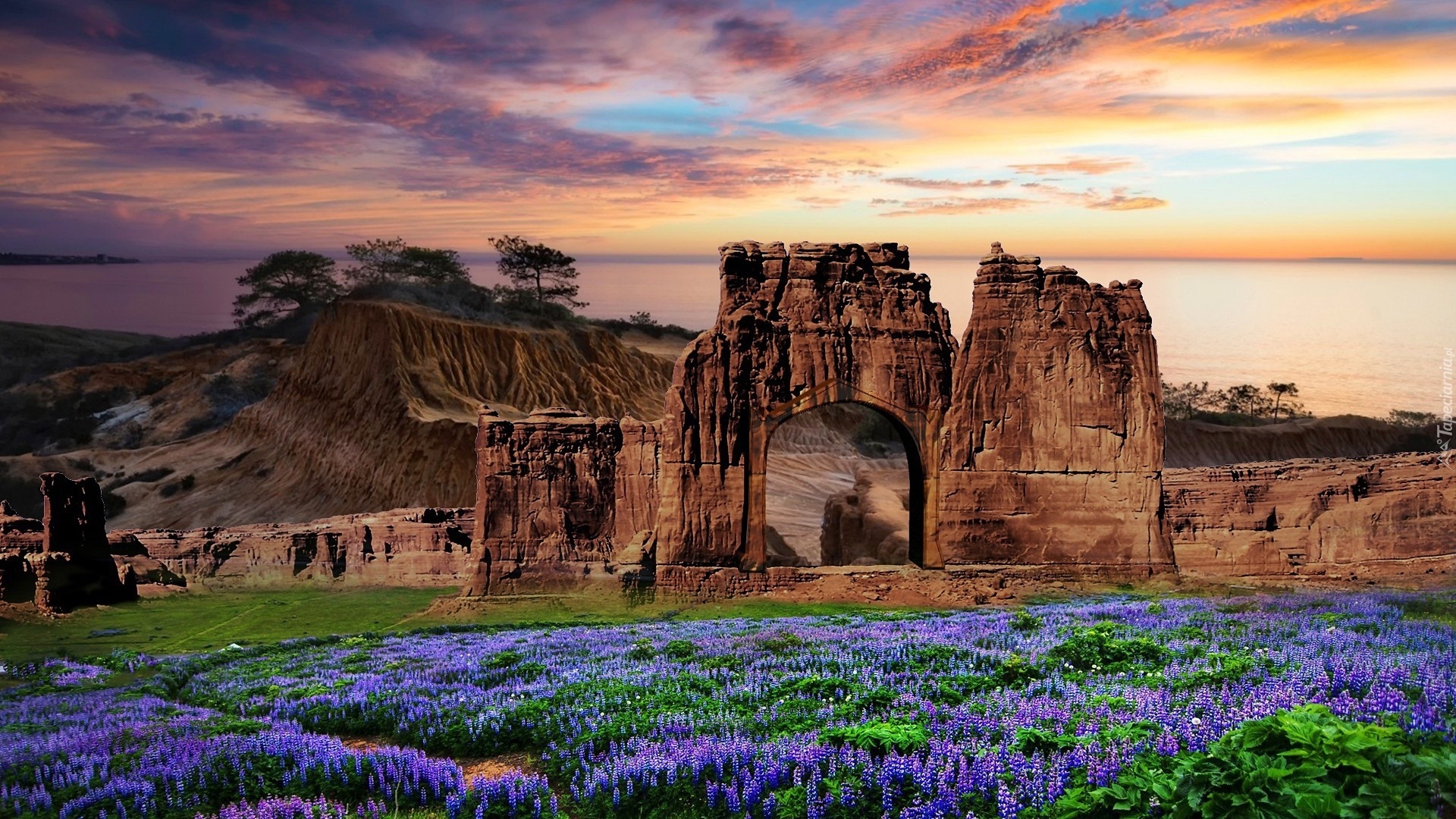 Edytor tapety: Skały, Łąka, Łubin
