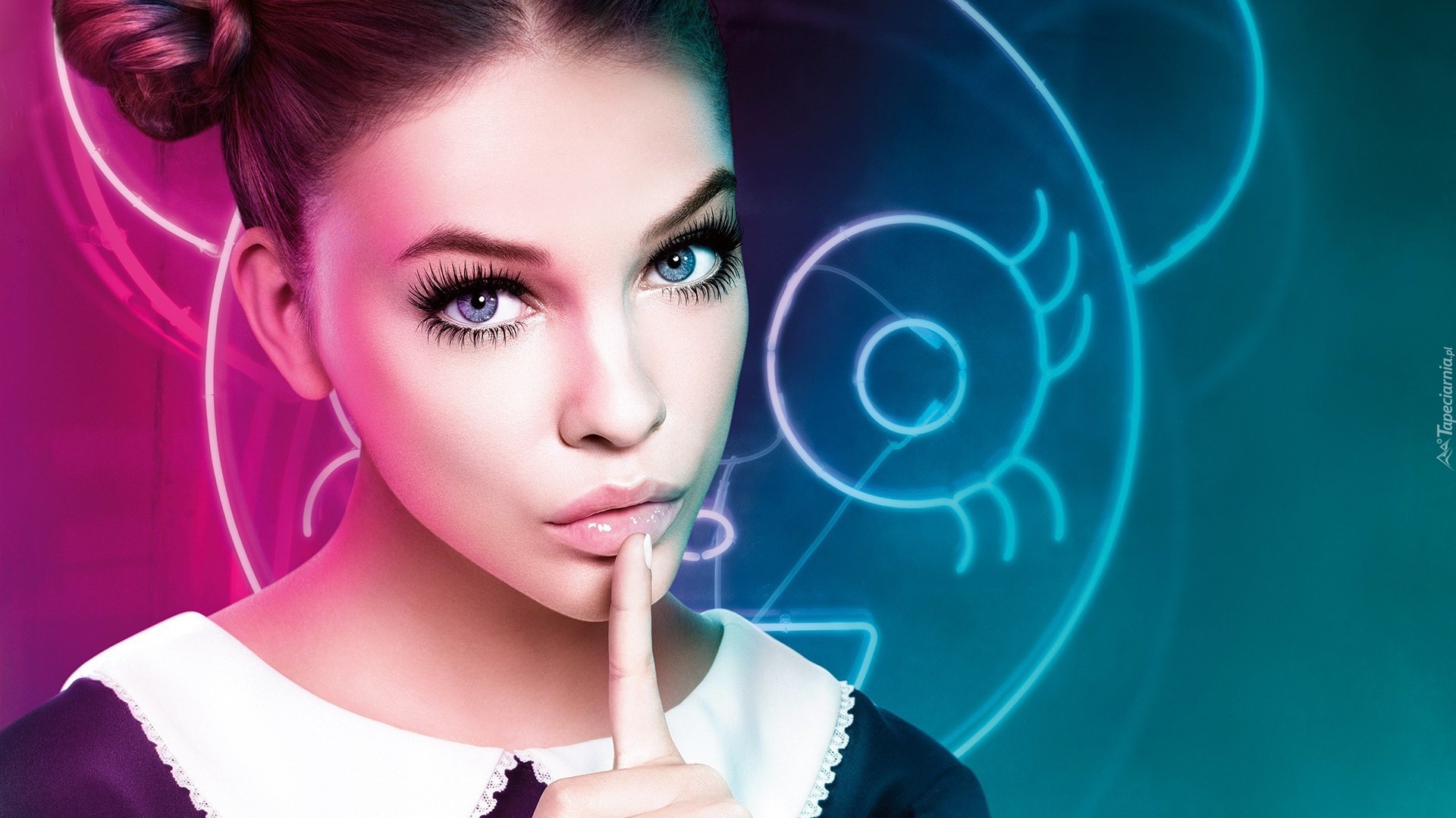 Edytor tapety: Brunetka, Makijaż, Niebieskie, Oczy, Barbara Palvin