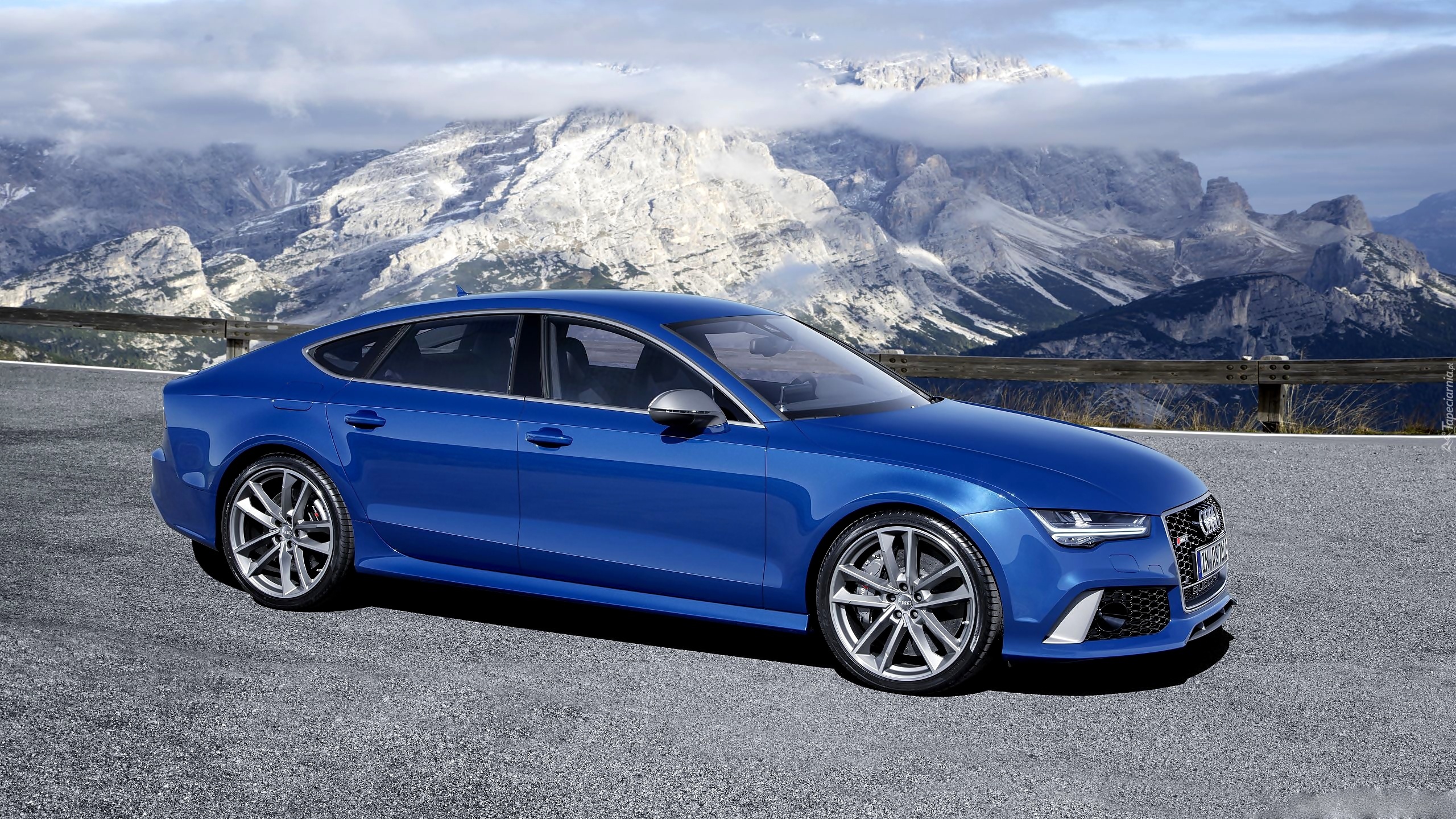 Edytor tapety: Niebieskie audi rs7 w górach