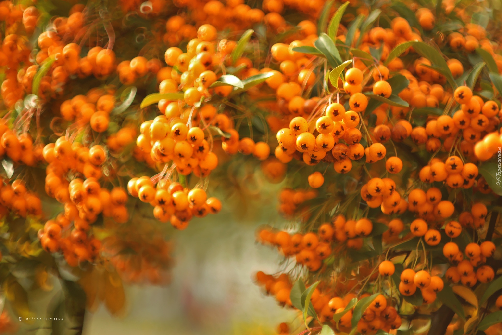 Edytor tapety: Ognik Szkarłatny, Krzew, Pomarańczowe, Owoce