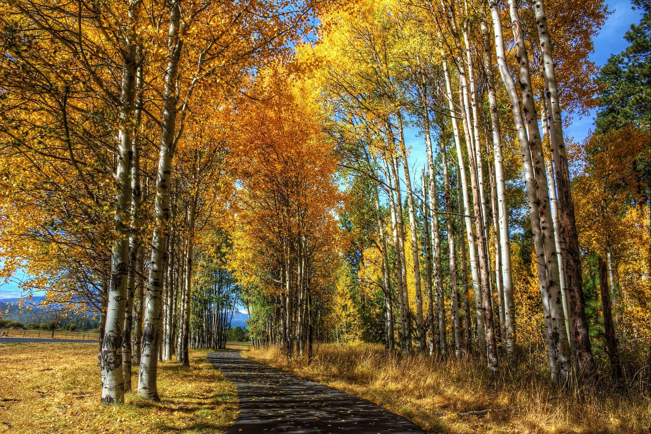 Edytor tapety: Jesień, Droga, Drzewa, Brzozy