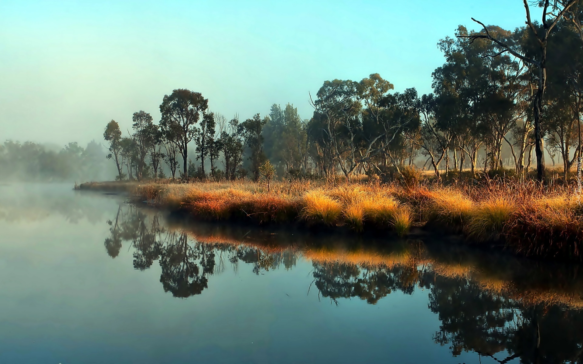 Edytor tapety: Rzeka, Drzewa, Odbicie