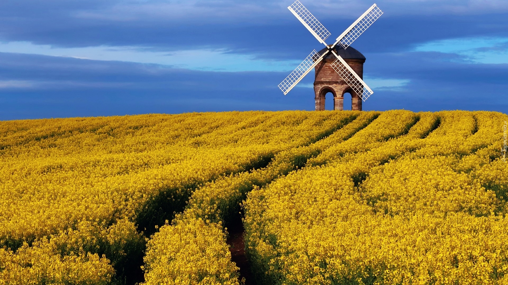 Edytor tapety: Pole, Uprawne, Rzepak, Wiatrak