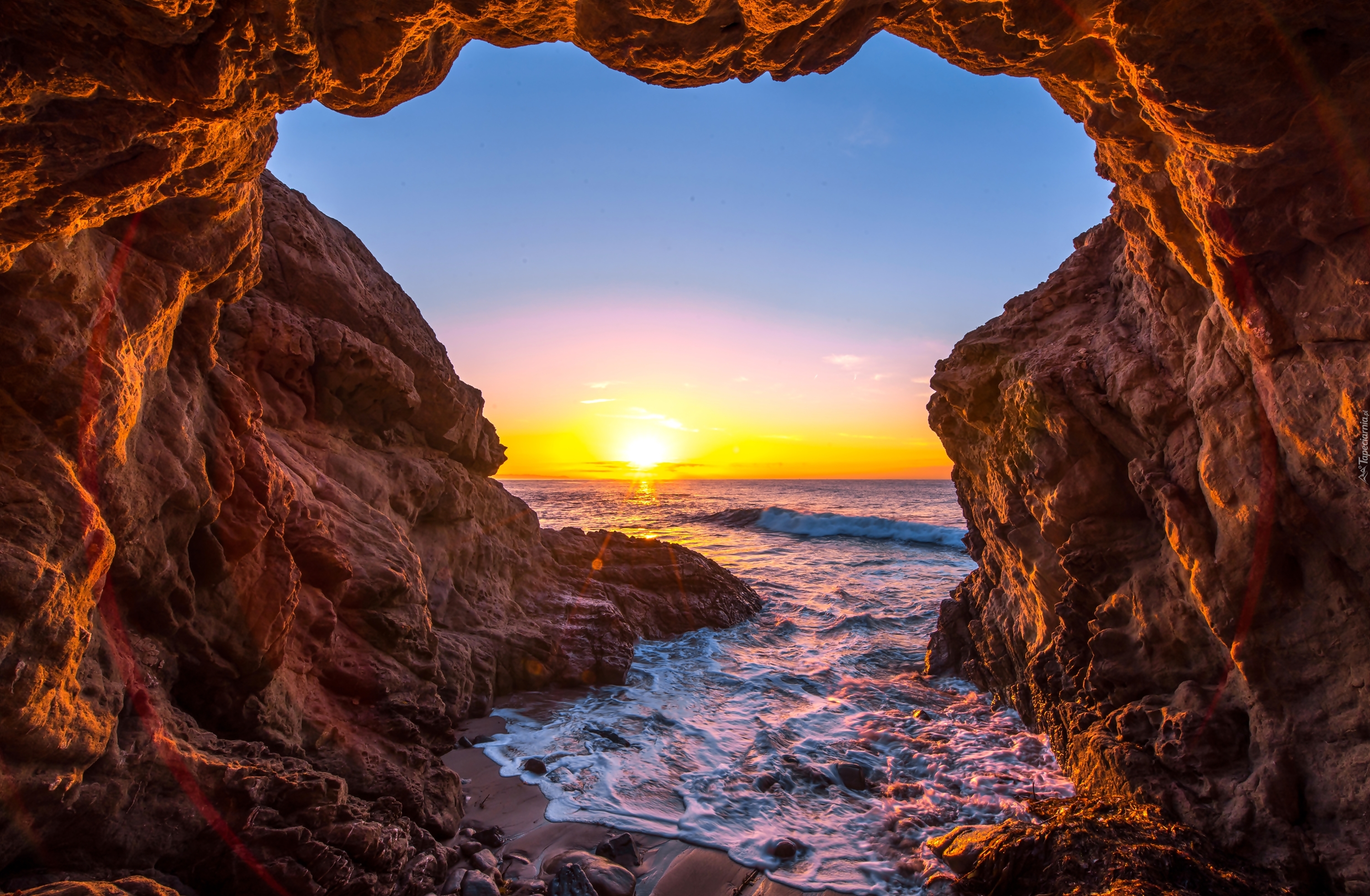 Edytor tapety: Morze, Skały, Jaskinia, Zachód Słońca, Malibu, Kalifornia