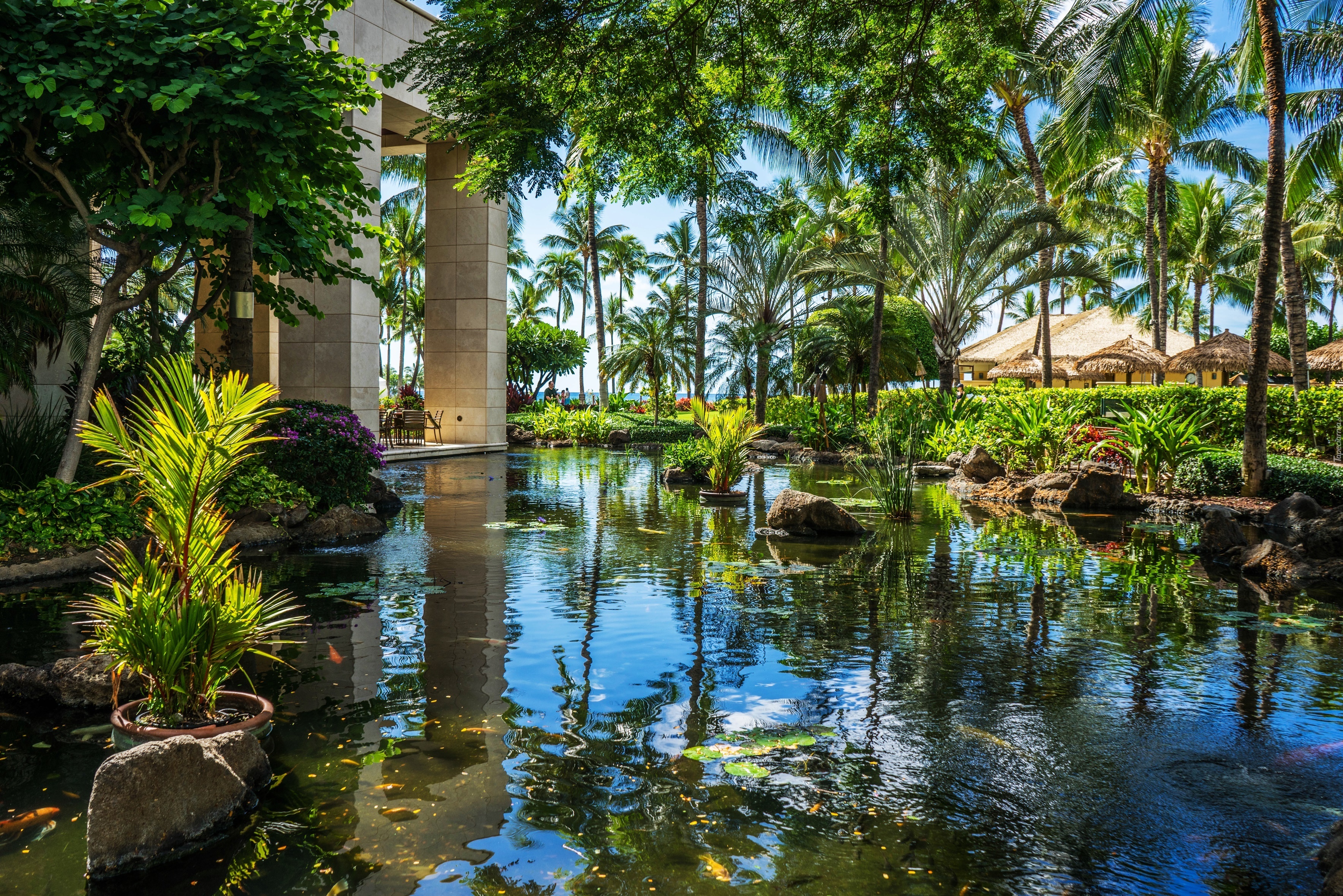 Edytor tapety: Hotelowy, Kompleks, Staw, Palmy, Kurort
