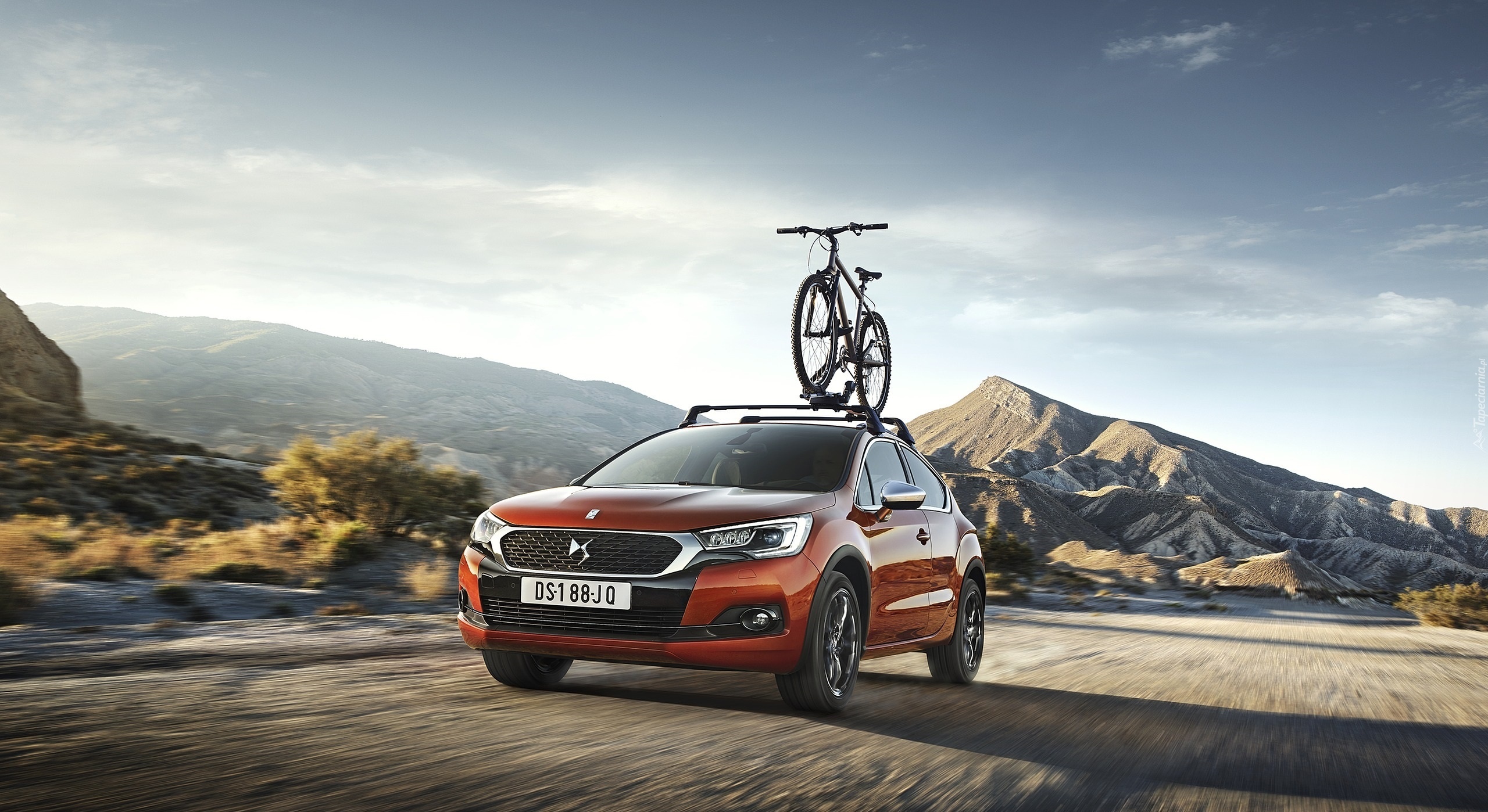 Edytor tapety: Citroen, DS4, Droga, Góry, Rower