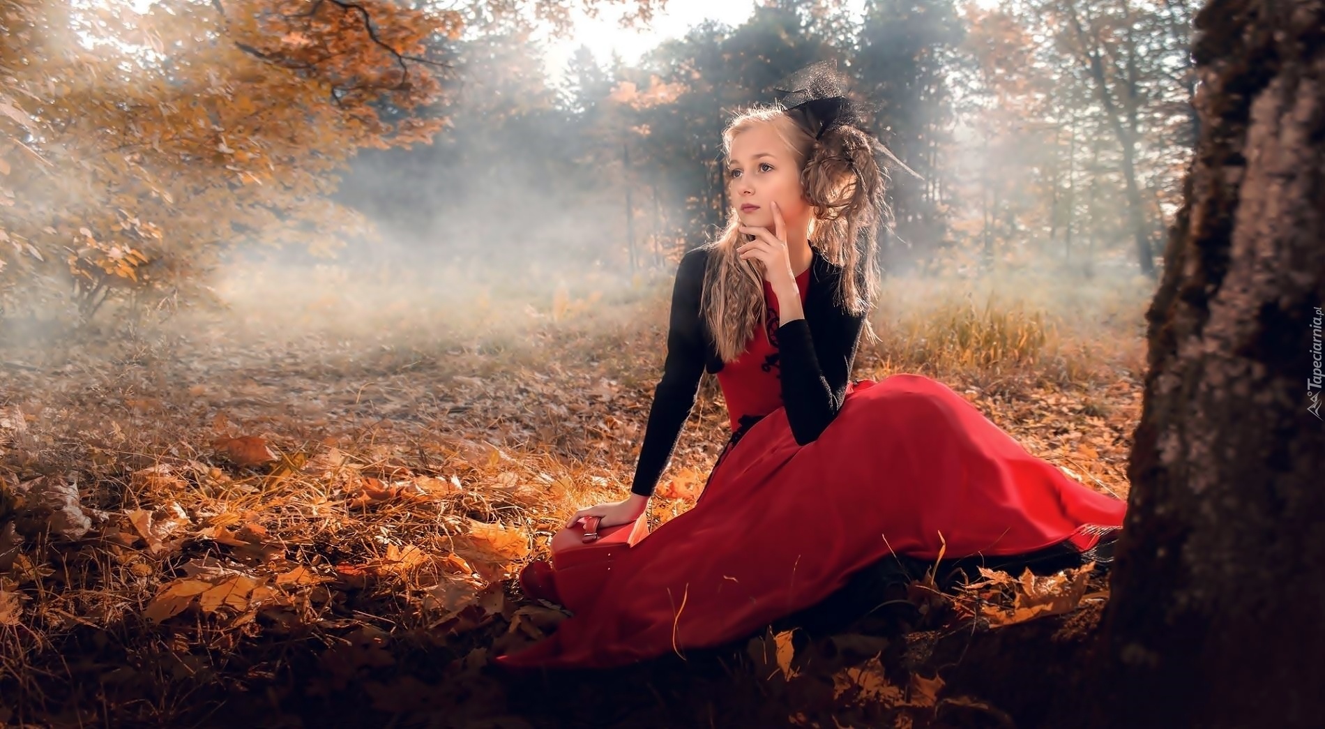 Edytor tapety: Modelka, Blondynka, Park, Mgła, Liście, Sesja, Zdjęciowa, Jesień