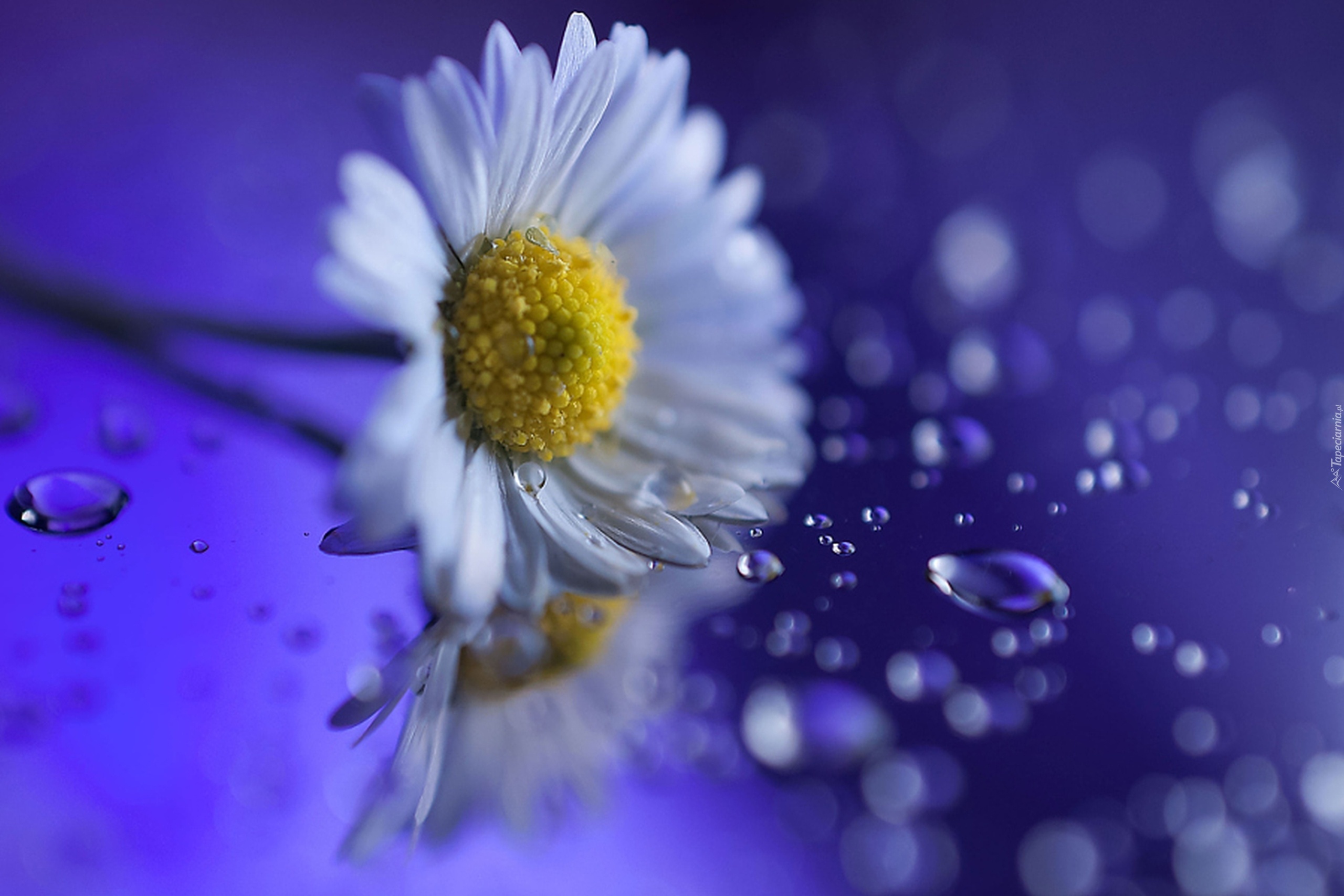 Edytor tapety: Stokrotka, Kwiat, Krople, Wody