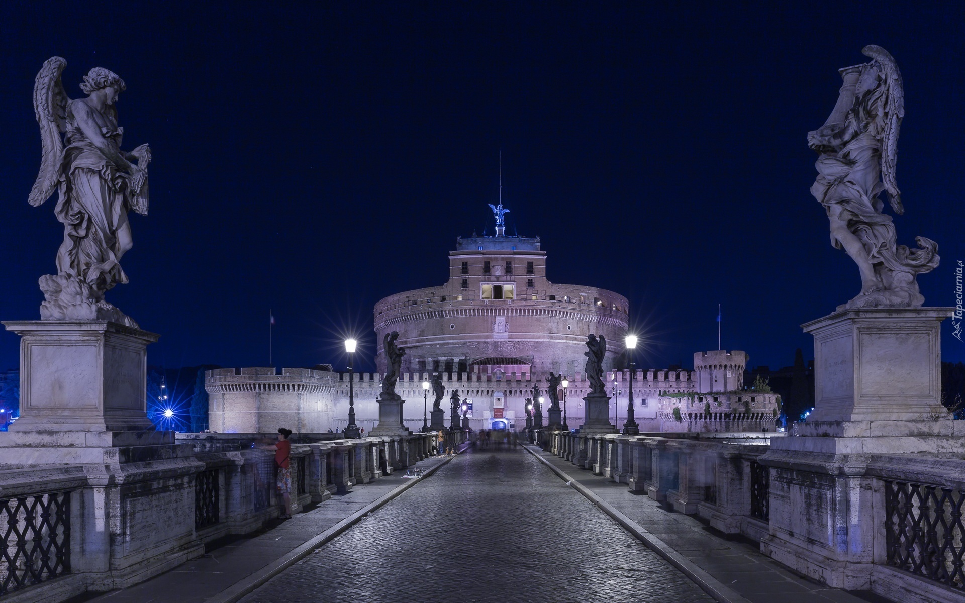 Edytor tapety: Włochy, Rzym, Mauzoleum Hadriana, Zamek Świętego Anioła, Most św. Anioła, Ponte San Angelo, Figury