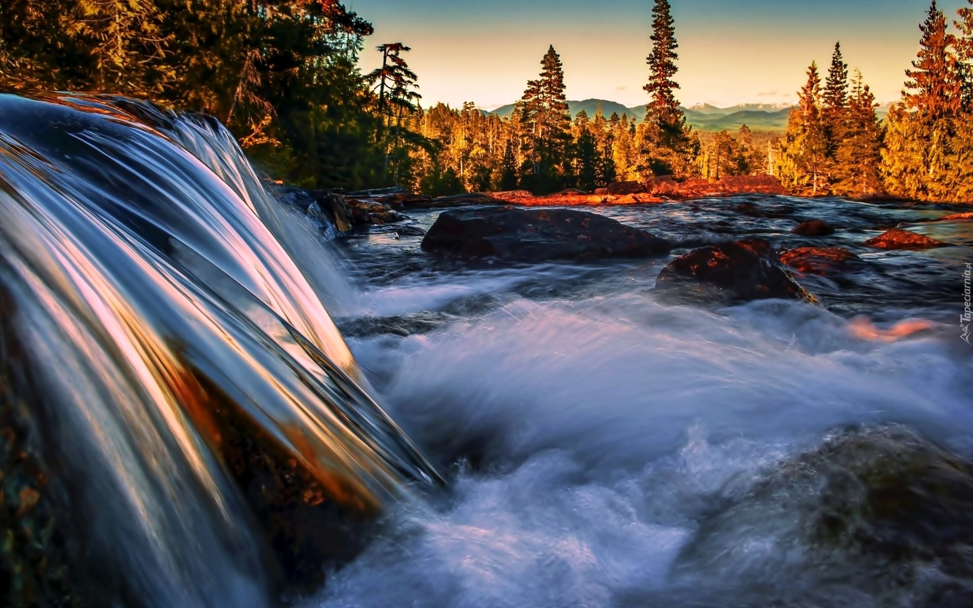 Edytor tapety: Wodospad, Rzeka, Jesień, Drzewa