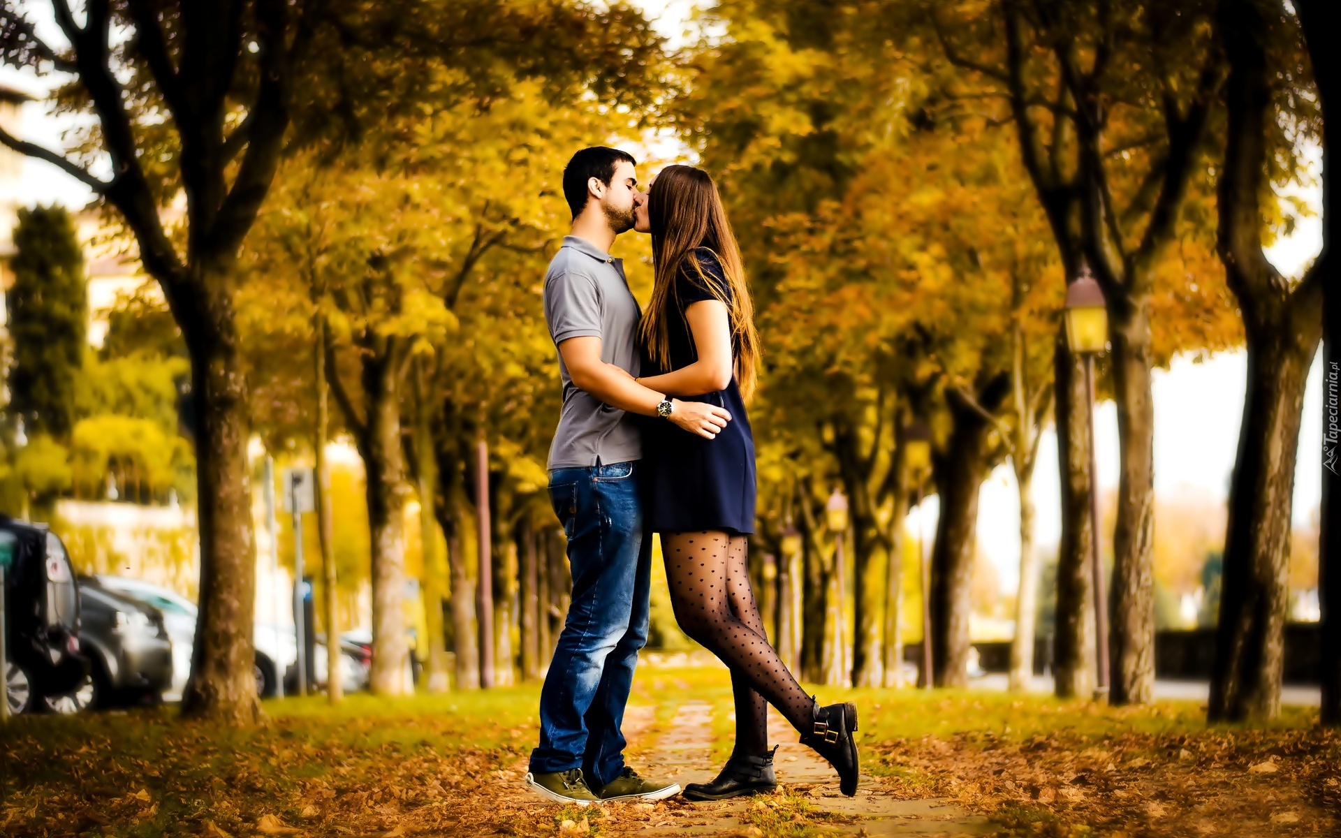 Edytor tapety: Jesień, Park, Aleja, Para, Pocałunek