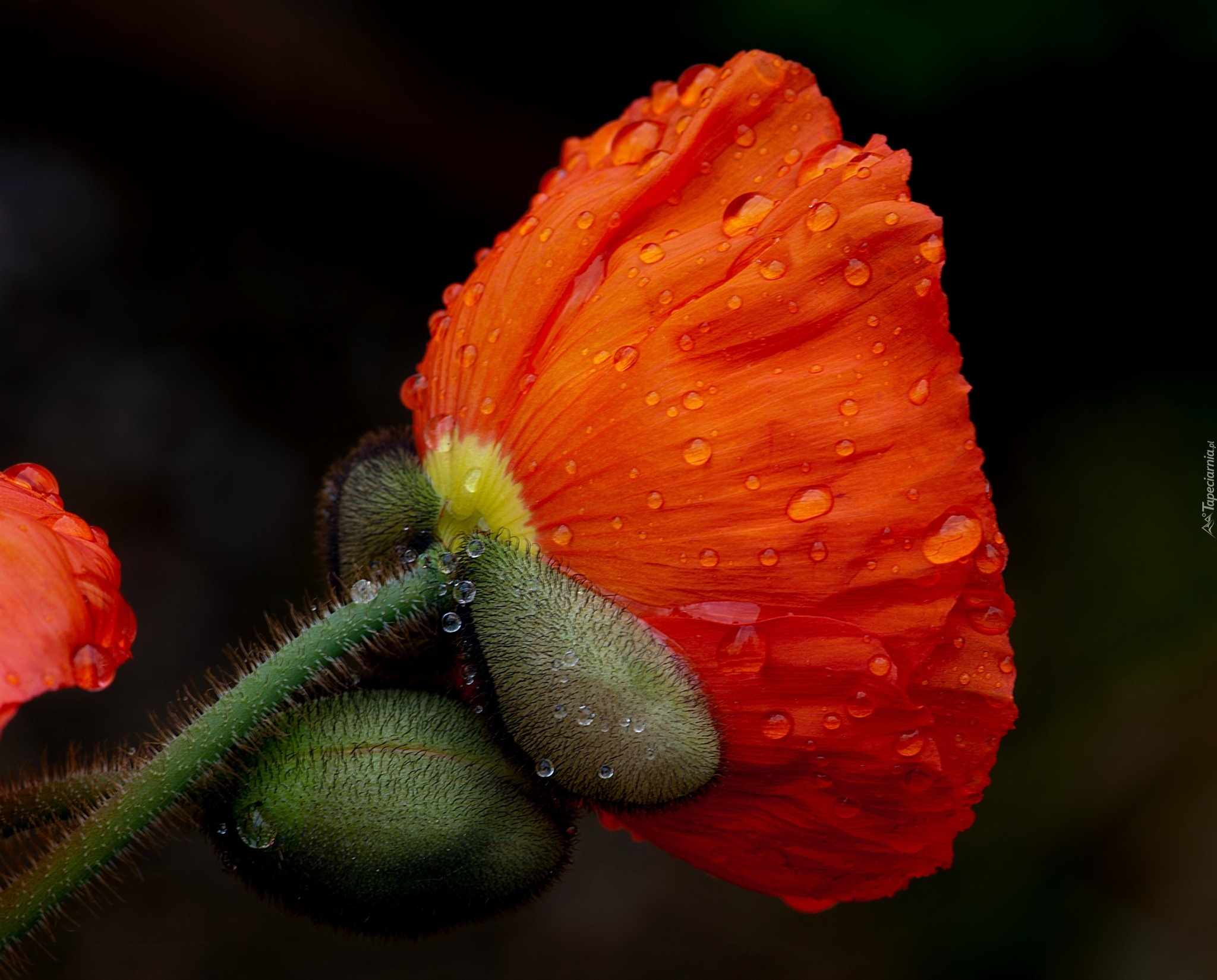 Edytor tapety: Mak, Krople, Wody, Makro
