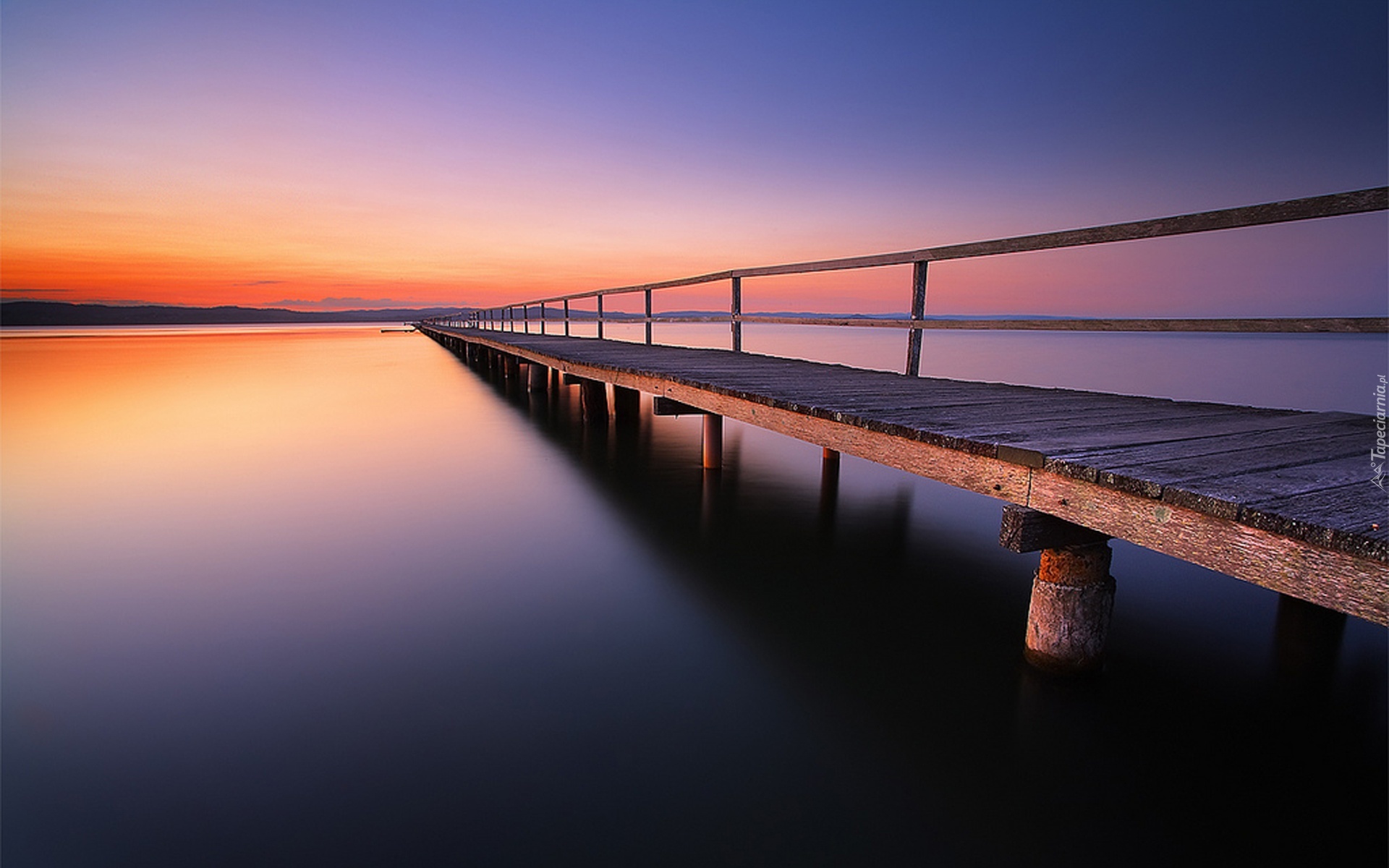 Edytor tapety: Jezioro, Pomost, Zachód, Słońca