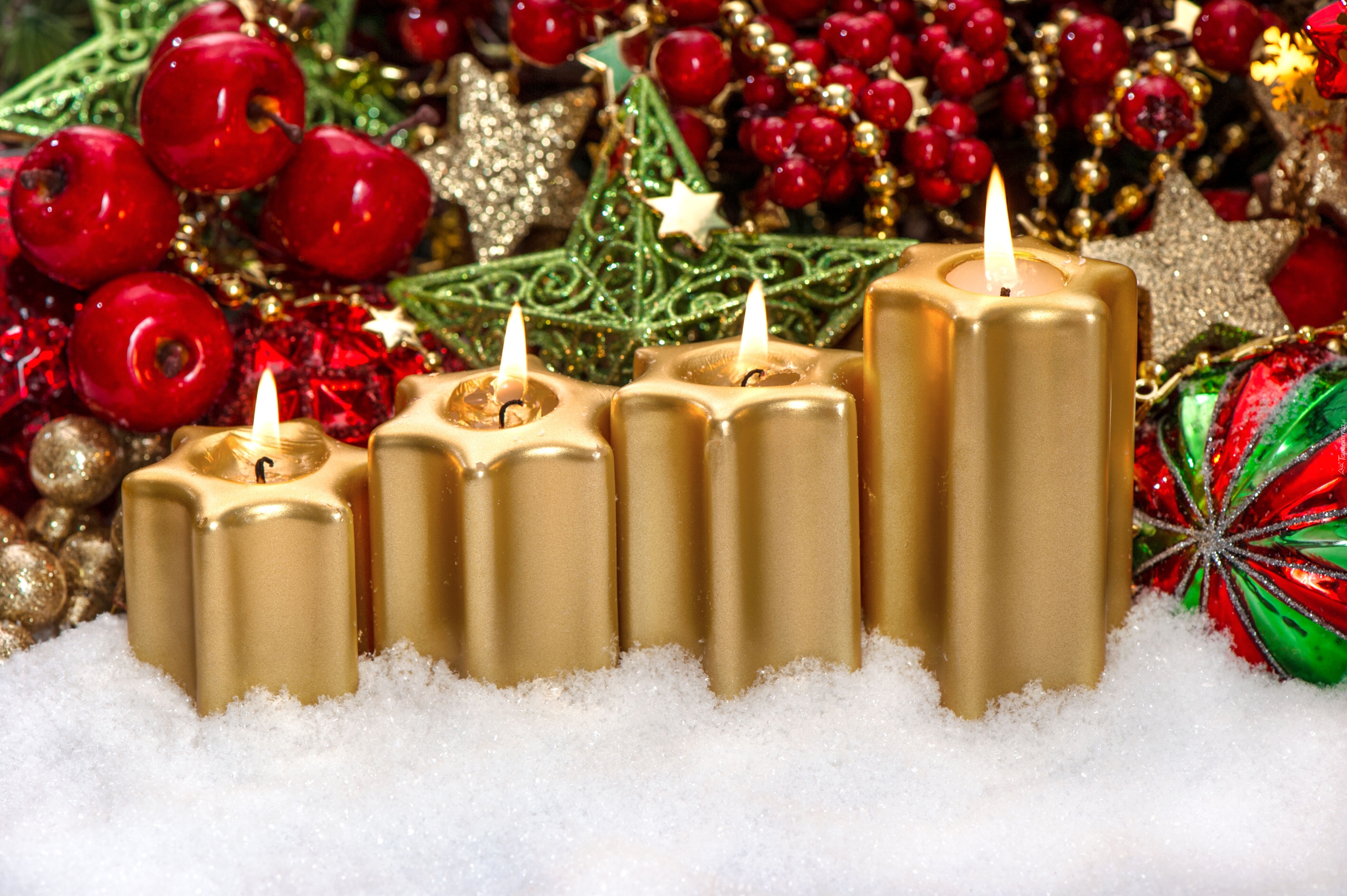 Edytor tapety: Złote, Świeczki, Bombki, Świąteczna, Kompozycja
