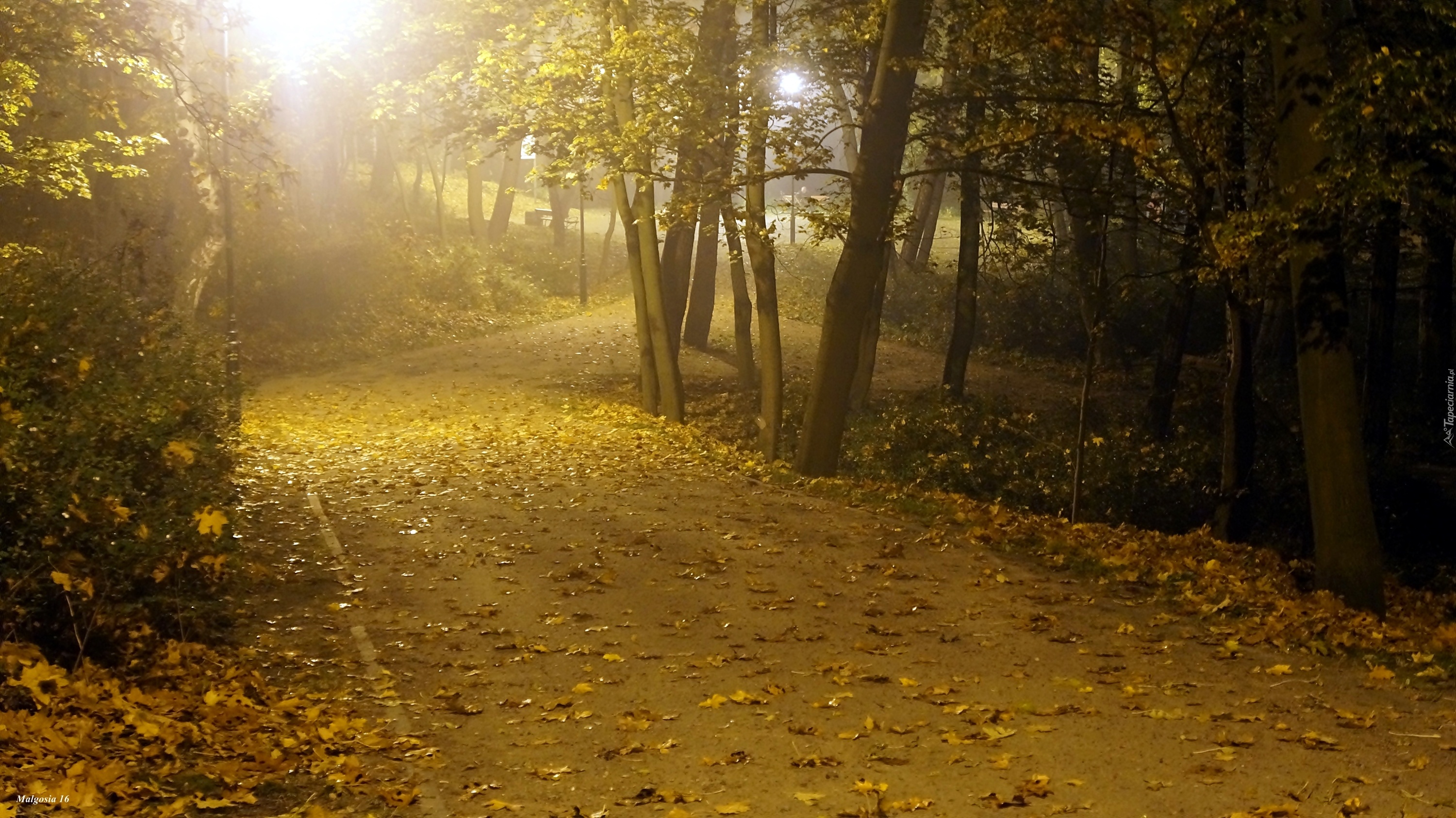 Edytor tapety: Park, Alejka, Drzewa, Noc, Latarnie