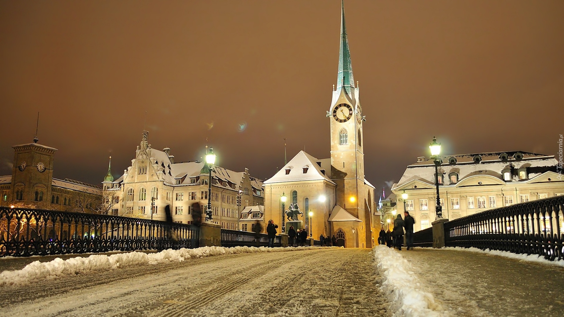 Edytor tapety: Szwajcaria, Zurich, Zima, Kościół, Most