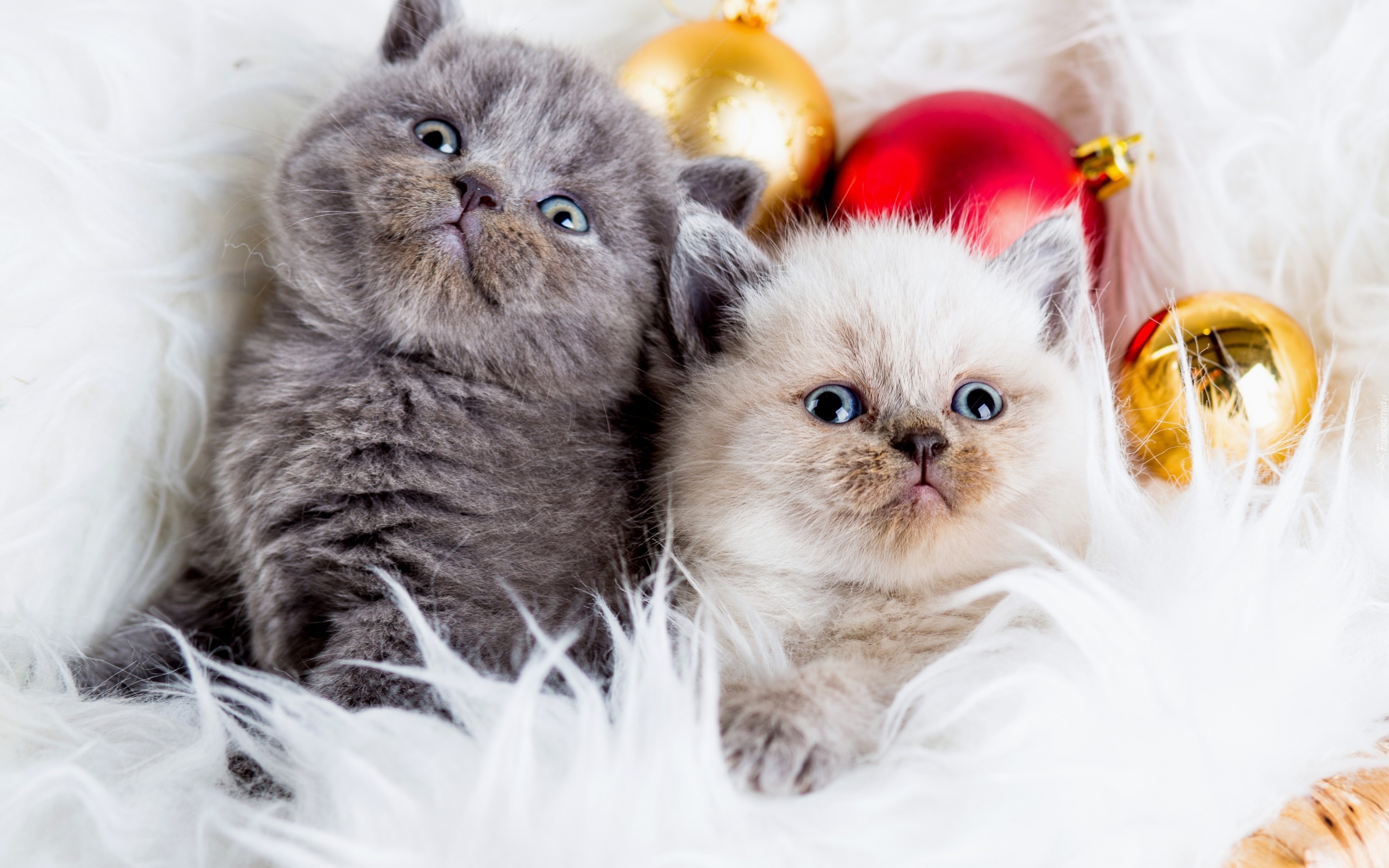 Edytor tapety: Kotki, Koty, Świąteczne, Bombki